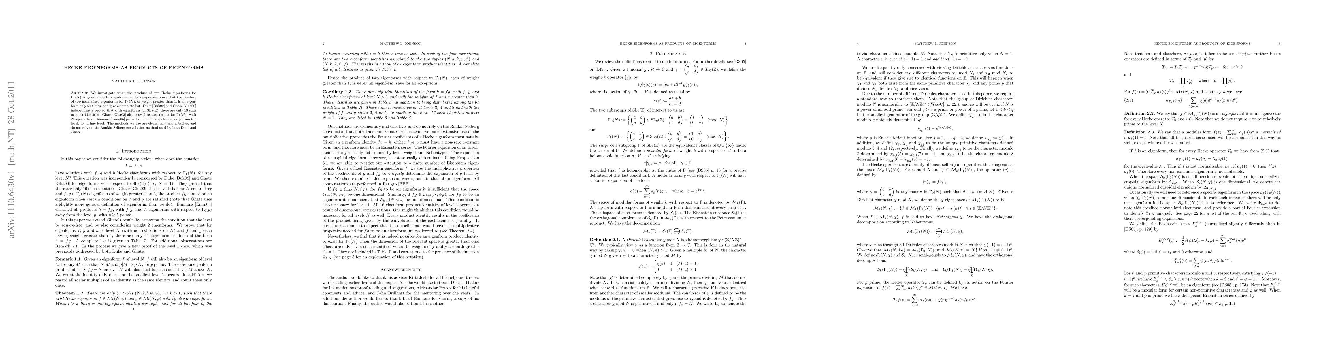 This paper explores conditions under which the product of two Hecke eigenforms for the congruence subgroup \(\Gamma_1(N)\) remains a Hecke eigenform. It concludes that such products are rare, occurring only 61 times for normalized eigenforms of weight greater than 1, and provides a complete list. The study employs elementary methods distinct from the Rankin-Selberg convolution method used by Duke and Ghate.