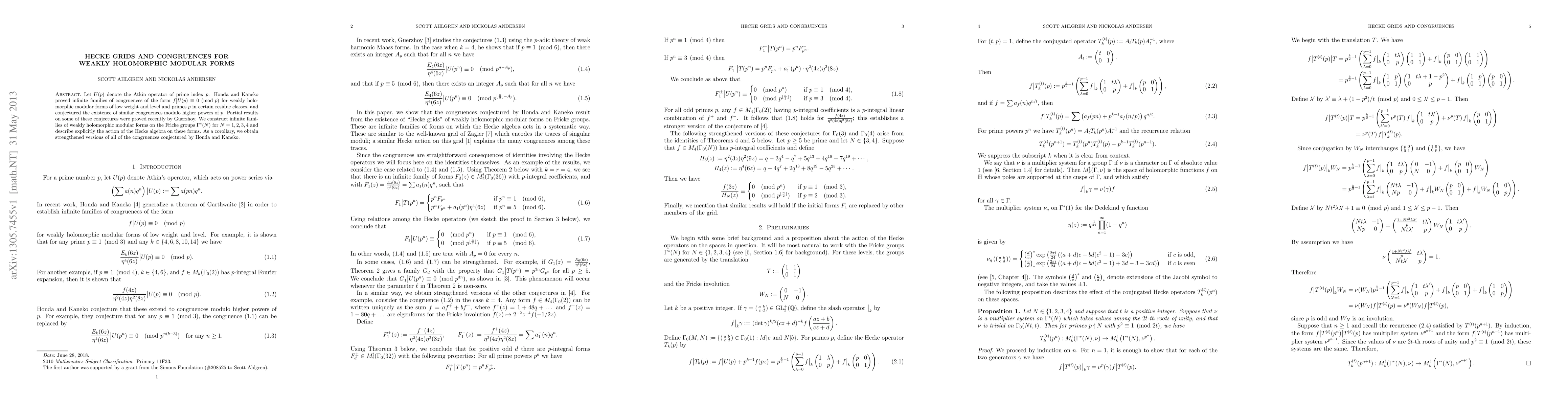 Let $U(p)$ denote the Atkin operator of prime index $p$. Honda and Kaneko proved infinite families of congruences of the form $f|U(p) \equiv 0 \pmod{p}$ for weakly holomorphic modular forms of low weight and level and primes $p$ in certain residue classes, and conjectured the existence of similar congruences modulo higher powers of $p$. Partial results on some of these conjectures were proved recently by Guerzhoy. We construct infinite families of weakly holomorphic modular forms on the Fricke groups $\Gamma^*(N)$ for $N=1,2,3,4$ and describe explicitly the action of the Hecke algebra on these forms. As a corollary, we obtain strengthened versions of all of the congruences conjectured by Honda and Kaneko.