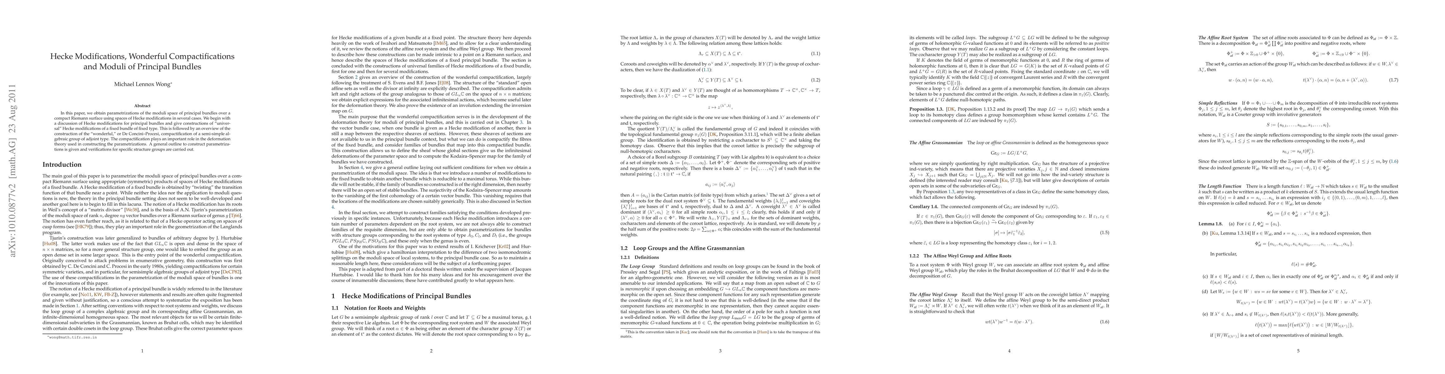 In this paper, we obtain parametrizations of the moduli space of principal bundles over a compact Riemann surface using spaces of Hecke modifications in several cases. We begin with a discussion of Hecke modifications for principal bundles and give constructions of "universal" Hecke modifications of a fixed bundle of fixed type. This is followed by an overview of the construction of the "wonderful," or De Concini--Procesi, compactification of a semi-simple algebraic group of adjoint type. The compactification plays an important role in the deformation theory used in constructing the parametrizations. A general outline to construct parametrizations is given and verifications for specific structure groups are carried out.