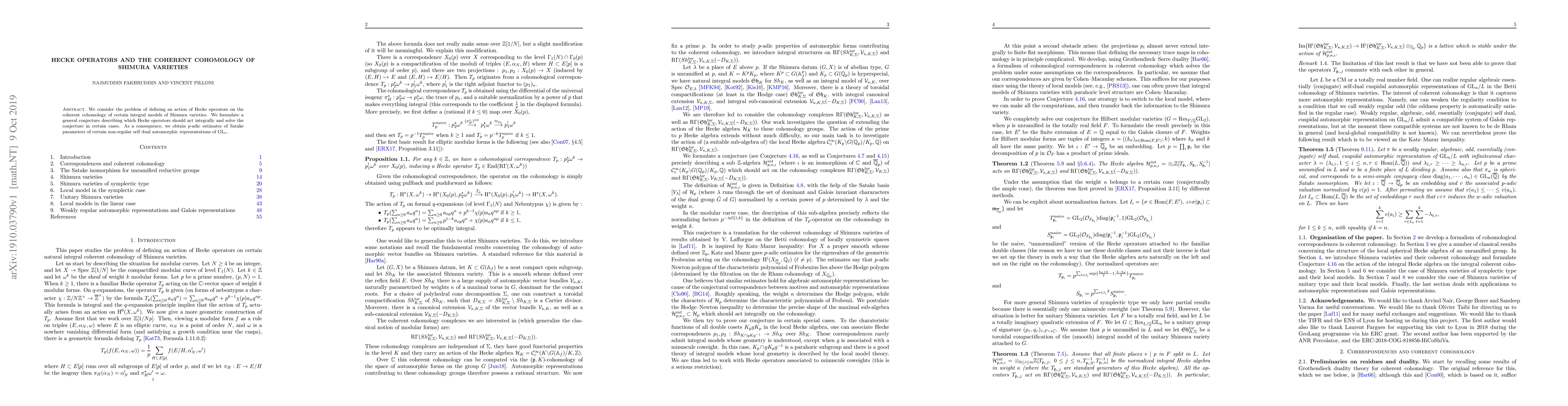 This paper investigates the action of Hecke operators on the coherent cohomology of integral models of Shimura varieties, formulates a conjecture on integrality, and proves it in specific cases, leading to $p$-adic estimates for Satake parameters of non-regular self-dual automorphic representations of $\mathrm{GL}_n$.