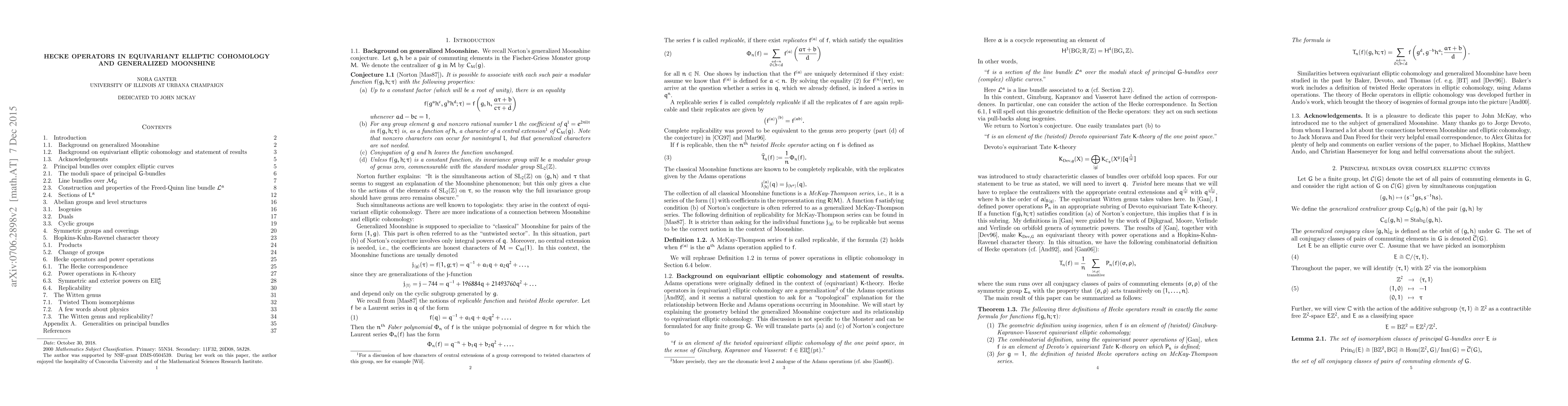 The paper introduces a framework for understanding Hecke operators within the context of equivariant elliptic cohomology, providing a novel perspective on moonshine conjectures.
