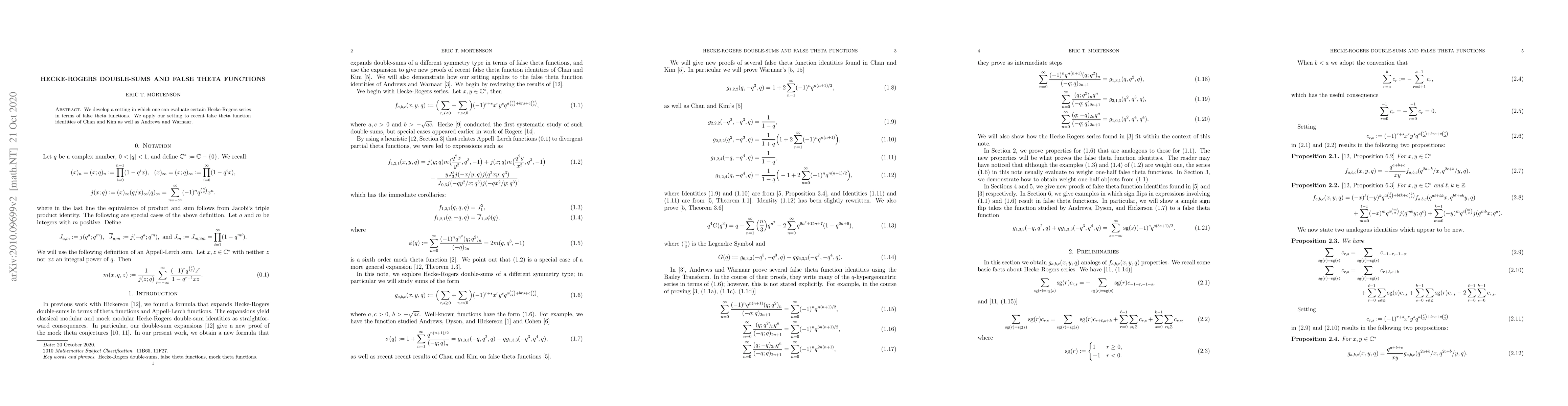 Summary: This paper establishes a framework for evaluating Hecke-Rogers double-sums using false theta functions, and applies this framework to recent identities involving false theta functions by Chan and Kim, as well as Andrews and Warnaar.