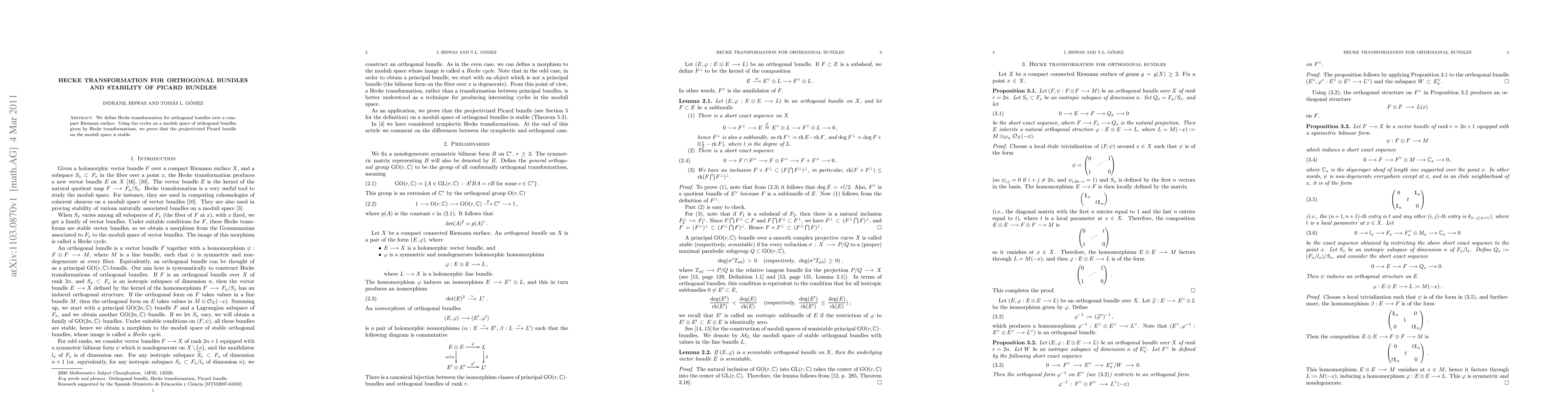 Researchers define a transformation for orthogonal bundles on compact Riemann surfaces, showing that a specific bundle is stable, with implications for understanding moduli spaces of these bundles.