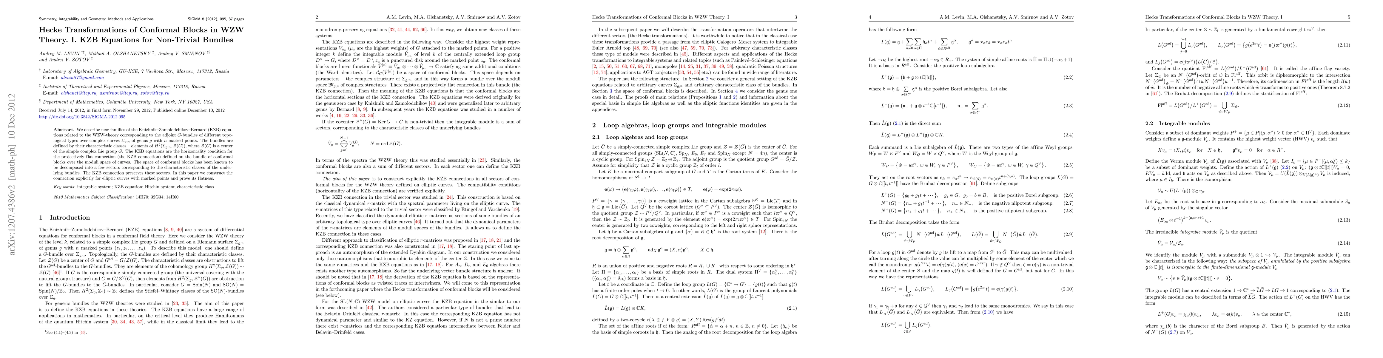 This paper introduces new families of KZB equations for WZW-theory associated with adjoint $G$-bundles over complex curves, focusing on the horizontality condition for the KZB connection defined on conformal blocks. It constructs the KZB connection explicitly for elliptic curves and proves its flatness.