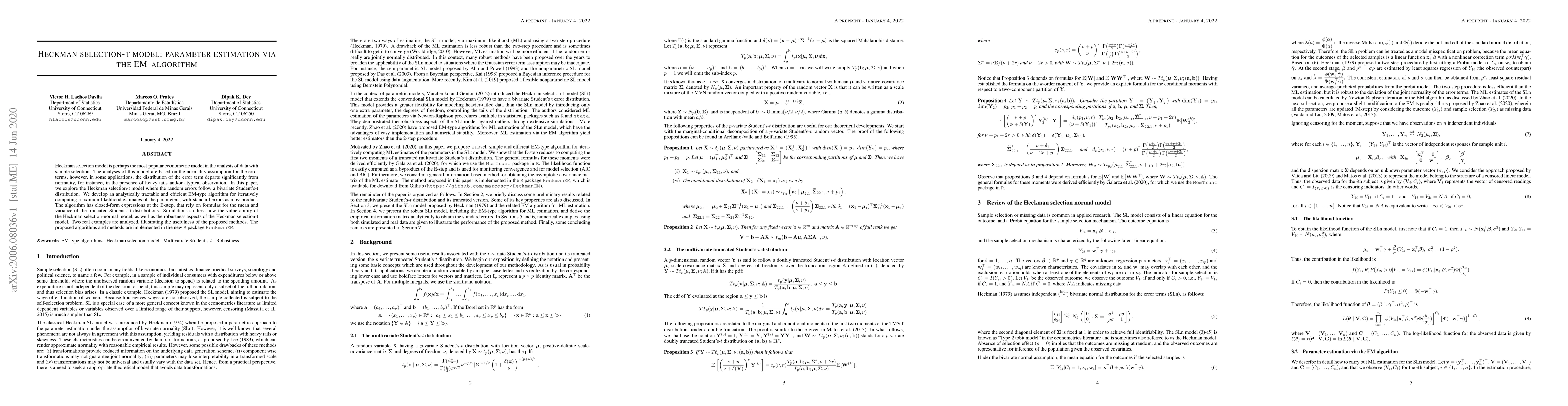 This paper introduces the Heckman selection-t model, an extension of the Heckman selection model that uses a bivariate Student's-t distribution for error terms, addressing normality assumptions' limitations. The authors develop an efficient EM-algorithm for parameter estimation with closed-form expressions at the E-step, demonstrating the model's robustness through simulations and real-world examples, implementing the methods in the R package HeckmanEM.