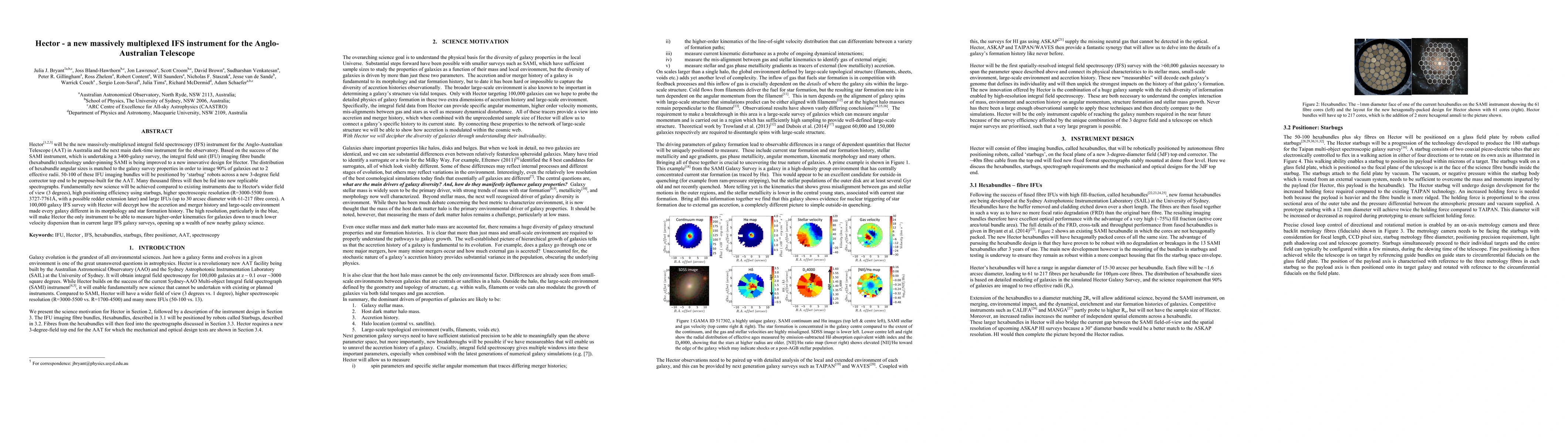 Hector will be the new massively-multiplexed integral field spectroscopy (IFS) instrument for the Anglo-Australian Telescope (AAT) in Australia and the next main dark-time instrument for the observatory. Based on the success of the SAMI instrument, which is undertaking a 3400-galaxy survey, the integral field unit (IFU) imaging fibre bundle (hexabundle) technology under-pinning SAMI is being improved to a new innovative design for Hector. The distribution of hexabundle angular sizes is matched to the galaxy survey properties in order to image 90% of galaxies out to 2 effective radii. 50-100 of these IFU imaging bundles will be positioned by 'starbug' robots across a new 3-degree field corrector top end to be purpose-built for the AAT. Many thousand fibres will then be fed into new replicable spectrographs. Fundamentally new science will be achieved compared to existing instruments due to Hector's wider field of view (3 degrees), high positioning efficiency using starbugs, higher spectroscopic resolution (R~3000-5500 from 3727-7761A, with a possible redder extension later) and large IFUs (up to 30 arcsec diameter with 61-217 fibre cores). A 100,000 galaxy IFS survey with Hector will decrypt how the accretion and merger history and large-scale environment made every galaxy different in its morphology and star formation history. The high resolution, particularly in the blue, will make Hector the only instrument to be able to measure higher-order kinematics for galaxies down to much lower velocity dispersion than in current large IFS galaxy surveys, opening up a wealth of new nearby galaxy science.