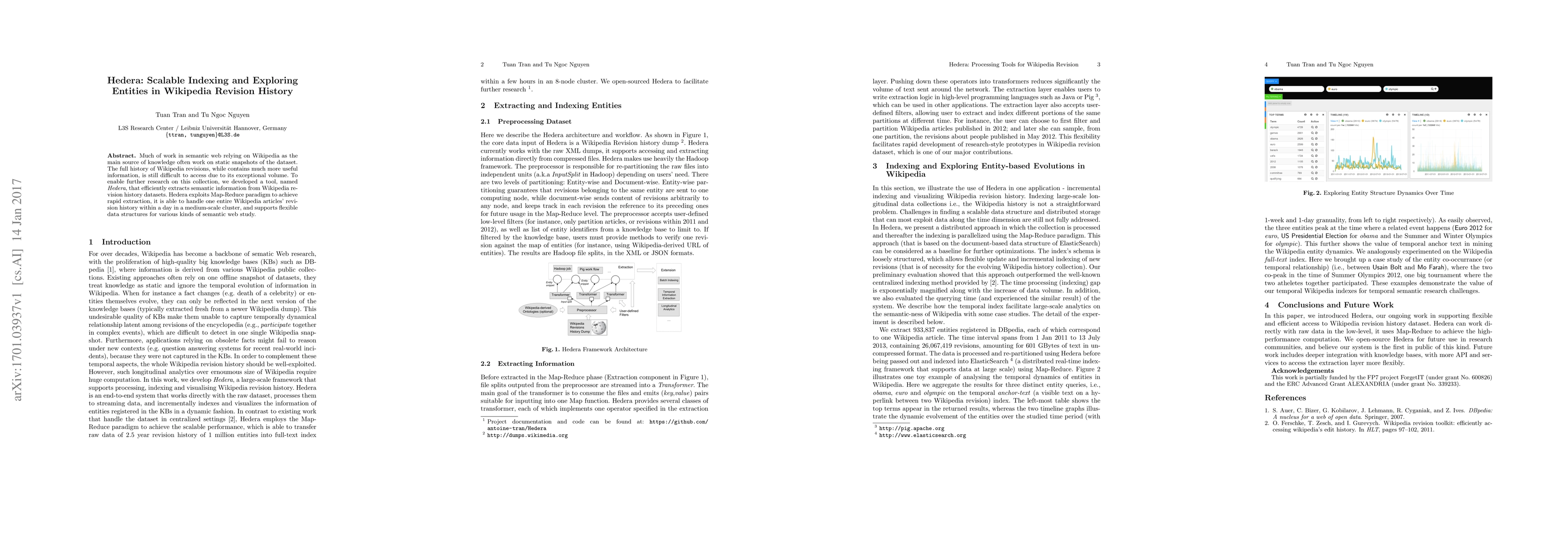 Hedera is a tool designed to efficiently extract semantic information from Wikipedia's revision history using the Map-Reduce paradigm. It enables researchers to access the full historical dataset, facilitating advanced semantic web studies.