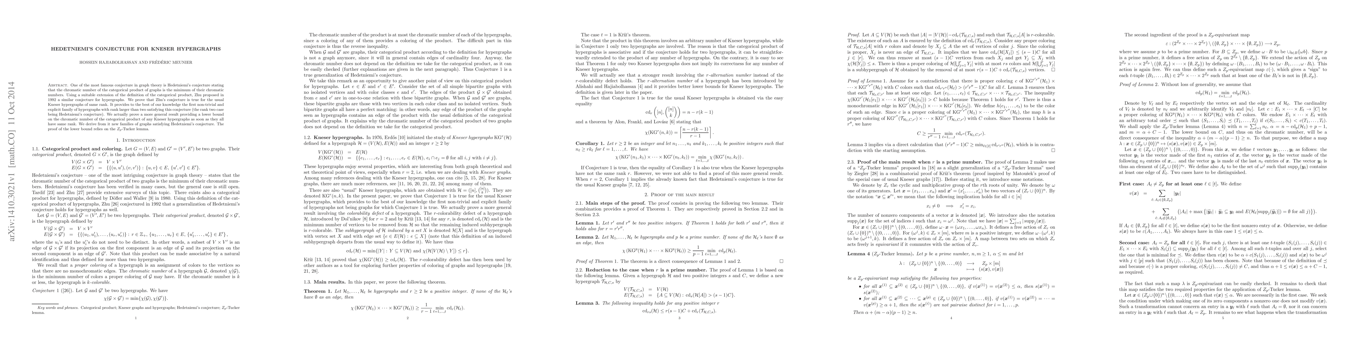 The paper proves Zhu's conjecture for Kneser hypergraphs, providing the first non-trivial family of hypergraphs with rank larger than two satisfying the conjecture, and establishes a lower bound on the chromatic number of their categorical product using the $Z_p$-Tucker lemma.