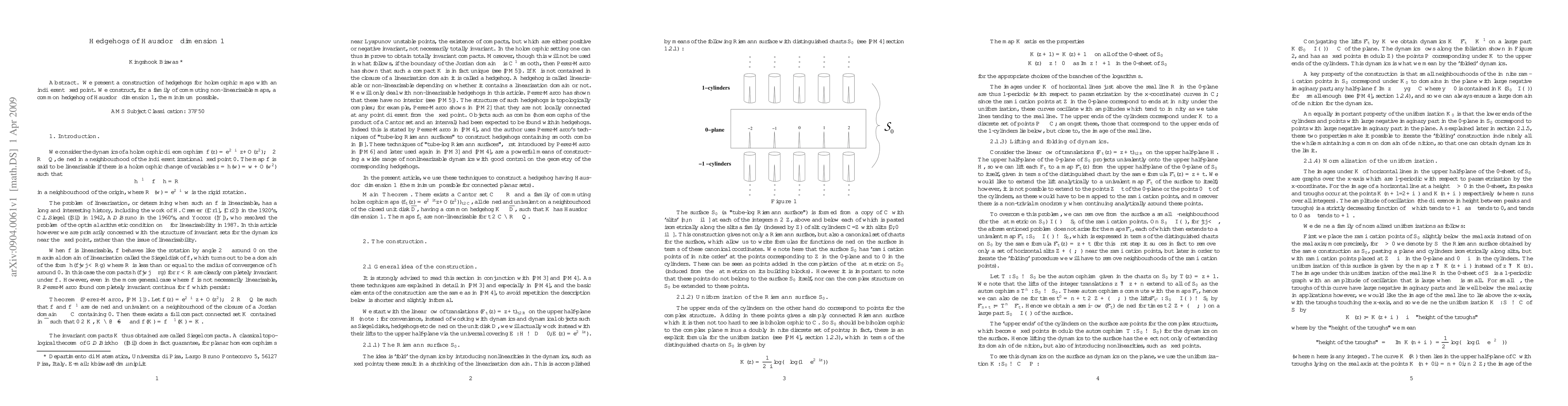 We present a construction of hedgehogs for holomorphic maps with an indifferent fixed point. We construct, for a family of commuting non-linearisable maps, a common hedgehog of Hausdorff dimension 1, the minimum possible.