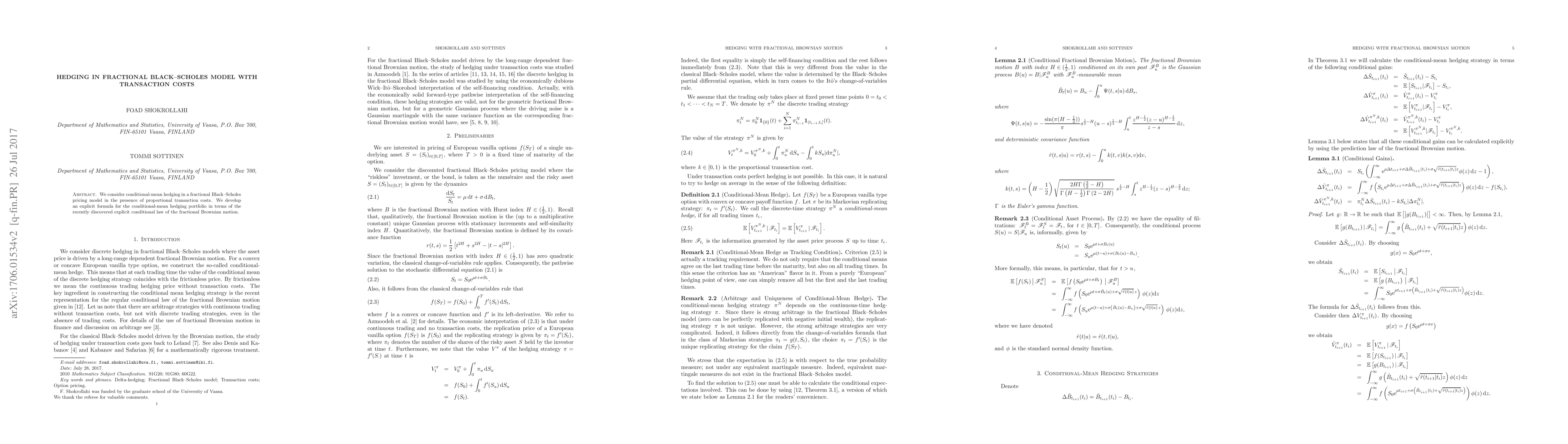 Summary: This paper develops a conditional-mean hedging formula for a fractional Black-Scholes model, incorporating proportional transaction costs, using the explicit conditional law of fractional Brownian motion. The result provides a clear method for hedging in such complex financial models.