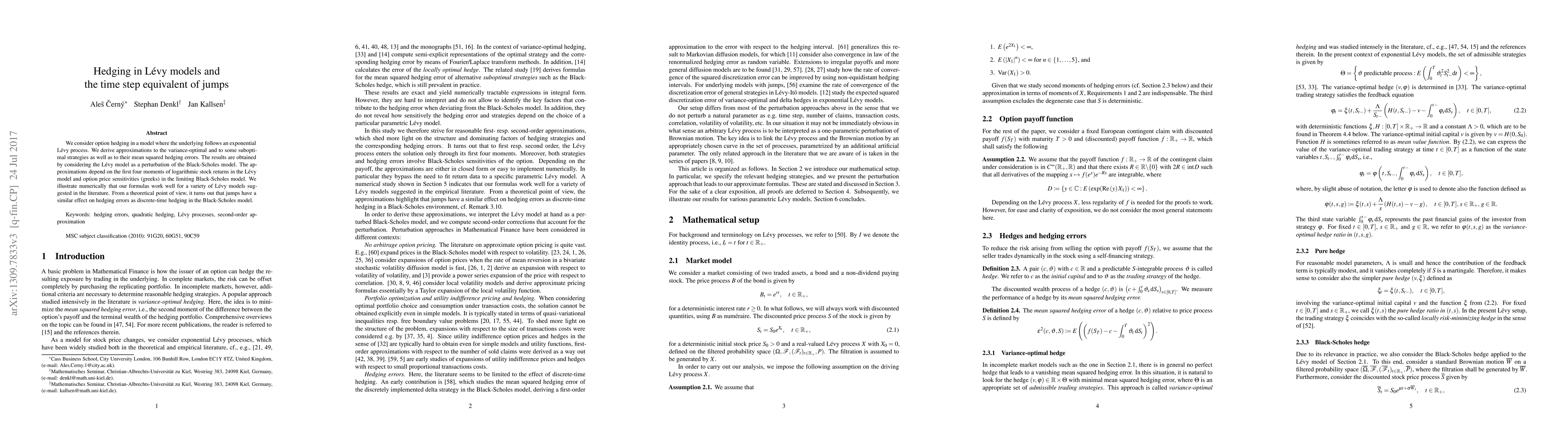 This paper explores option hedging in Lévy models, deriving approximations for variance-optimal and suboptimal hedging strategies and their mean squared hedging errors. The study finds that jumps in the Lévy model have a similar impact on hedging errors as discrete-time hedging in the Black-Scholes model, with numerical validation across various Lévy models.