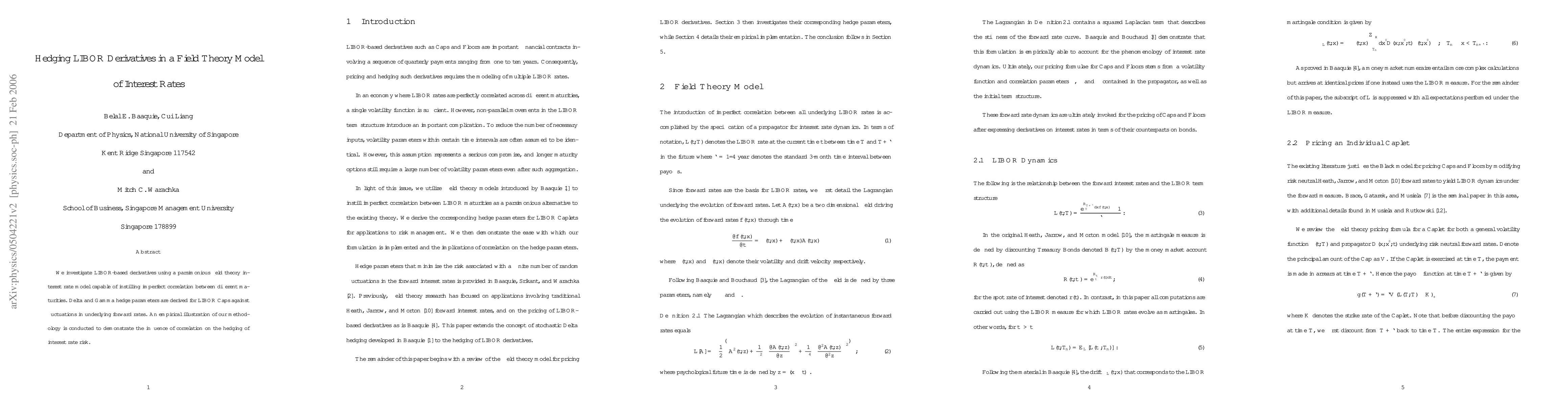 This paper develops a field theory model for LIBOR derivatives, deriving hedging parameters for LIBOR Caps and examining how imperfect correlation between maturities influences interest rate risk hedging, with empirical validation provided.