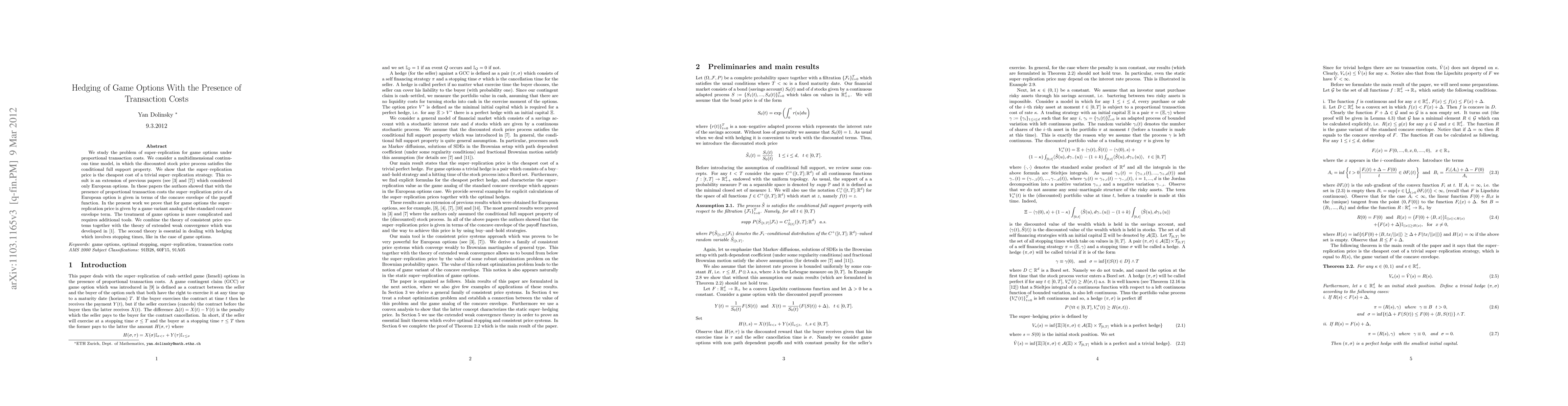The research provides an important contribution to understanding hedging strategies for game options under proportional transaction costs.