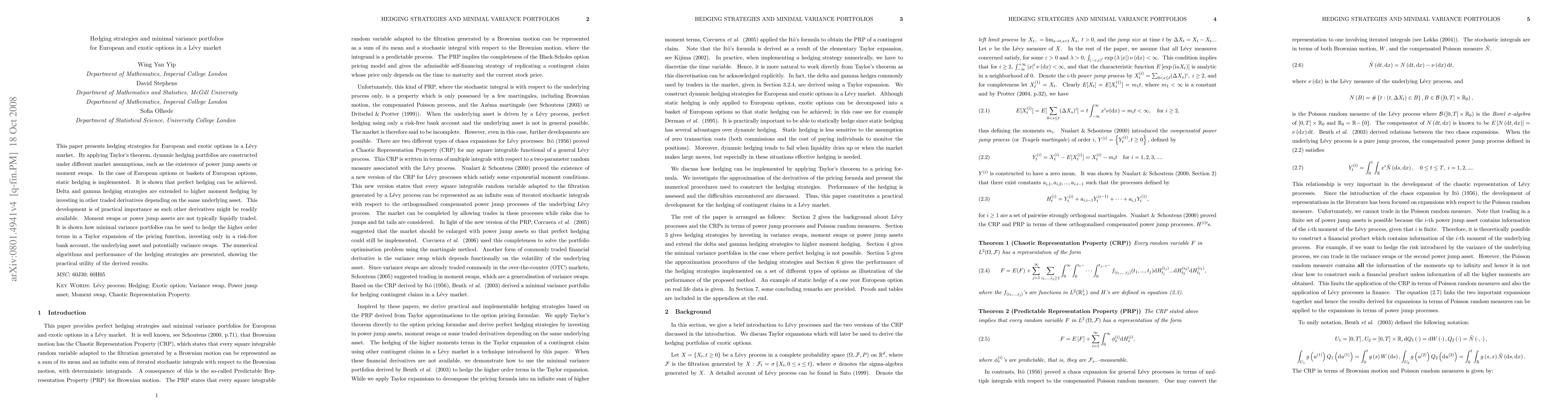This paper develops hedging strategies for European and exotic options in a Lévy market, utilizing dynamic and static hedging techniques. It introduces minimal variance portfolios to hedge higher-order terms, demonstrating practical utility through numerical algorithms.