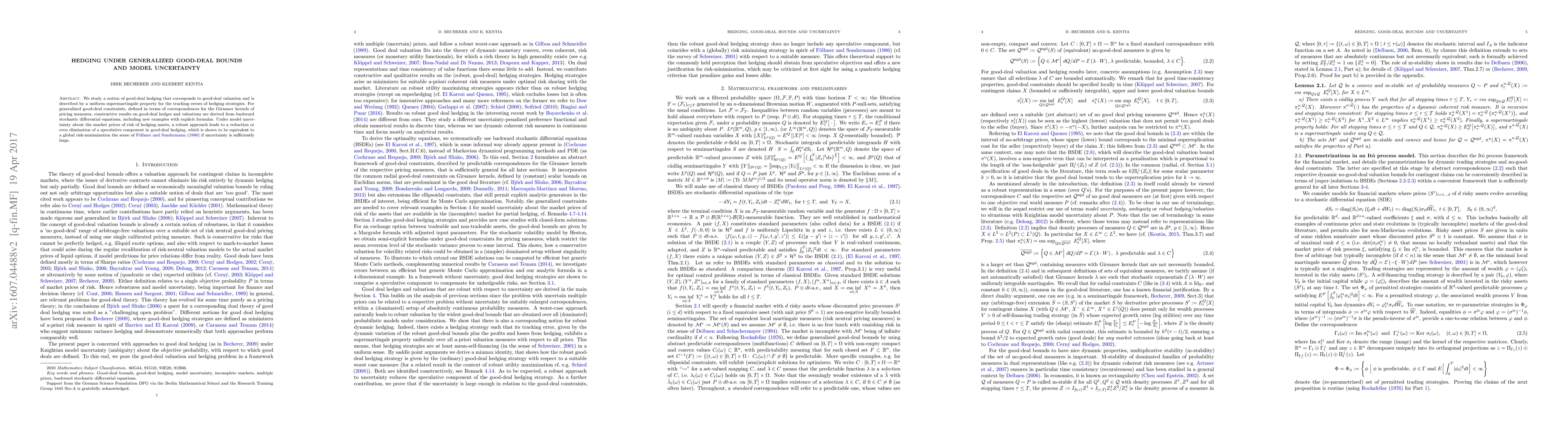 This paper explores hedging strategies under generalized good-deal bounds amidst model uncertainty, demonstrating that a robust approach can eliminate speculative components. It shows equivalence to global risk minimization under significant uncertainty and derives constructive hedges and valuations using backward stochastic differential equations.