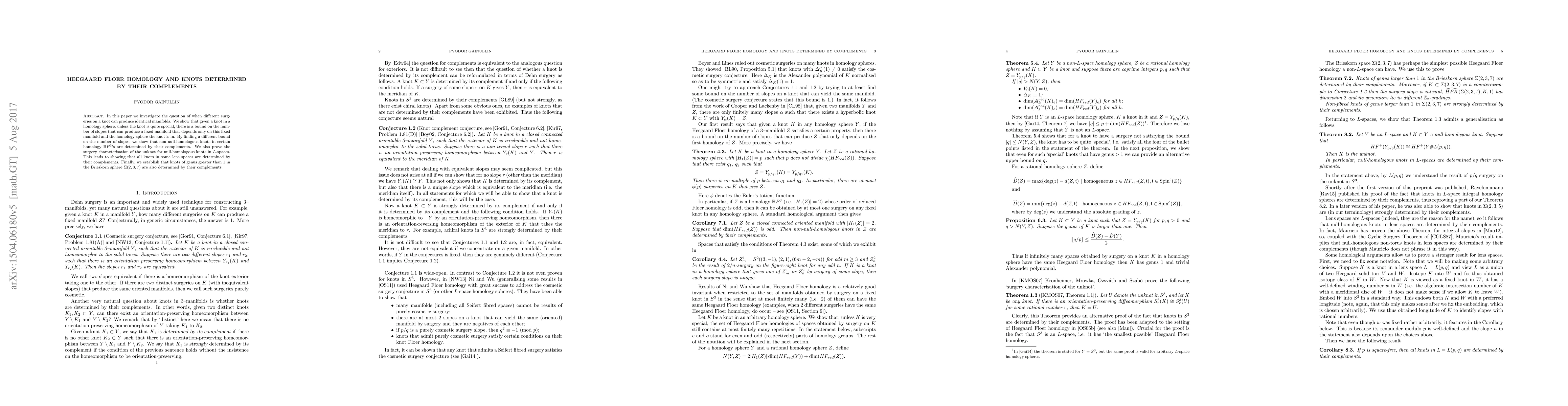 This paper investigates how different surgeries on a knot can produce identical manifolds, showing that non-null-homologous knots in certain spaces are determined by their complements.