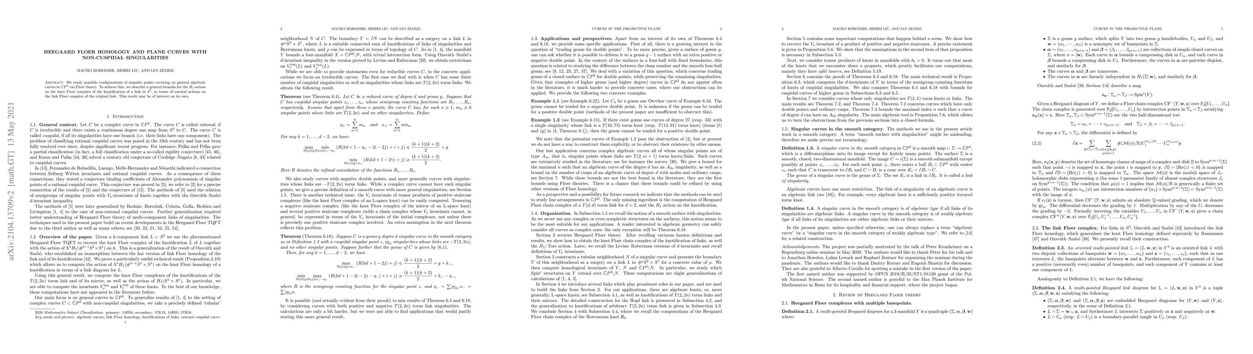 We study possible configurations of singular points occuring on general algebraic curves in $\mathbb{C}P^2$ via Floer theory. To achieve this, we describe a general formula for the $H_{1}$-action on the knot Floer complex of the knotification of a link in $S^3$, in terms of natural actions on the link Floer complex of the original link. This result may be interest on its own.