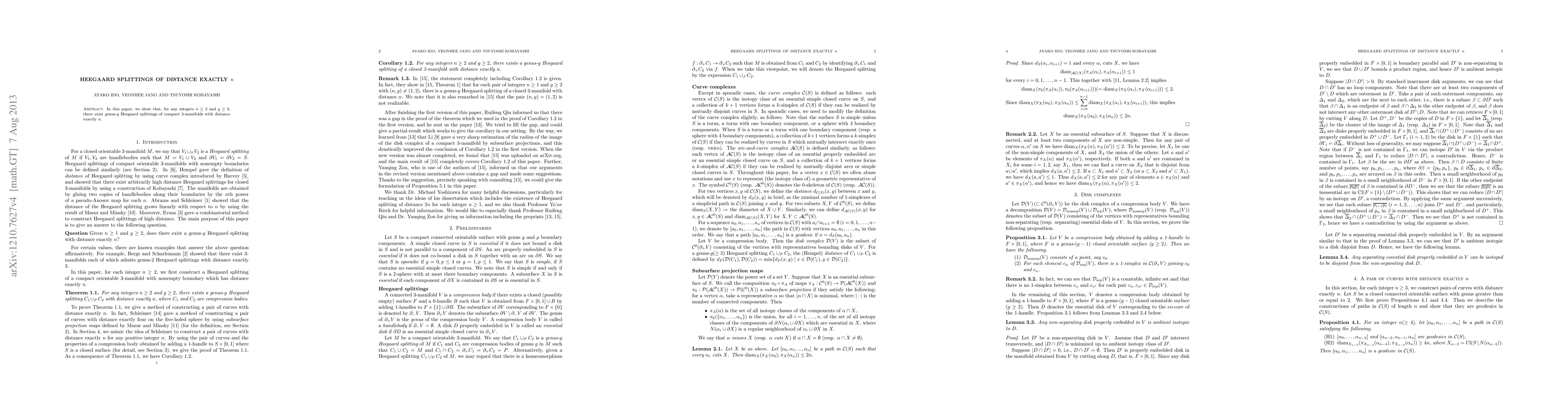 This paper demonstrates the existence of genus-$g$ Heegaard splittings for compact 3-manifolds with a distance measure precisely equal to $n$ for any integers $n\geq 2$ and $g\geq 2$. It provides insights into the structure of such splittings.