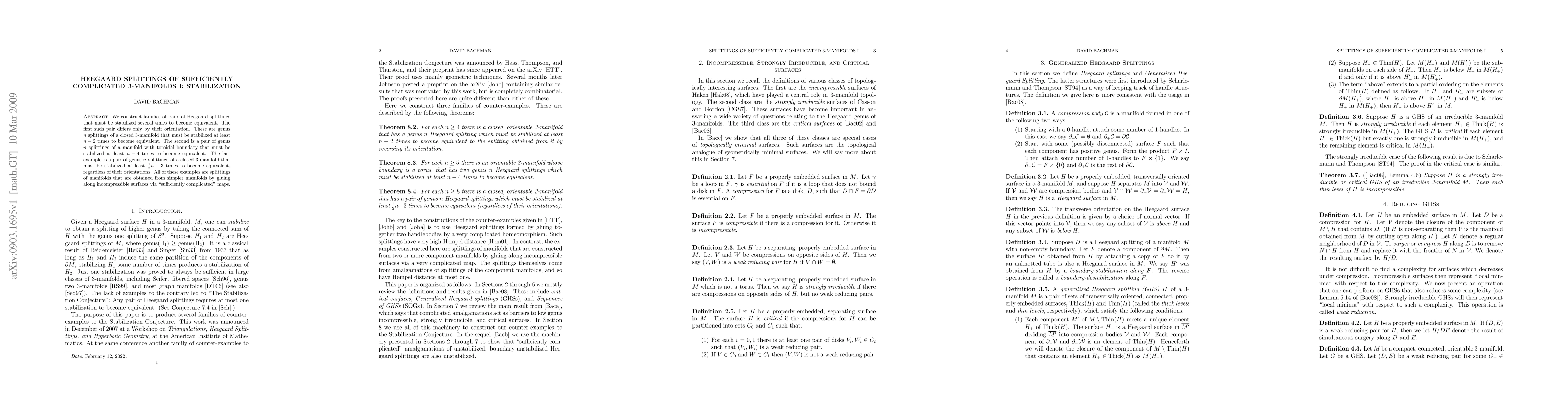 This paper constructs families of Heegaard splittings that require stabilization multiple times to become equivalent, with examples including genus n splittings of closed 3-manifolds needing stabilization at least n-2 times. It also discusses stabilization requirements for toroidal boundary and general closed 3-manifolds.