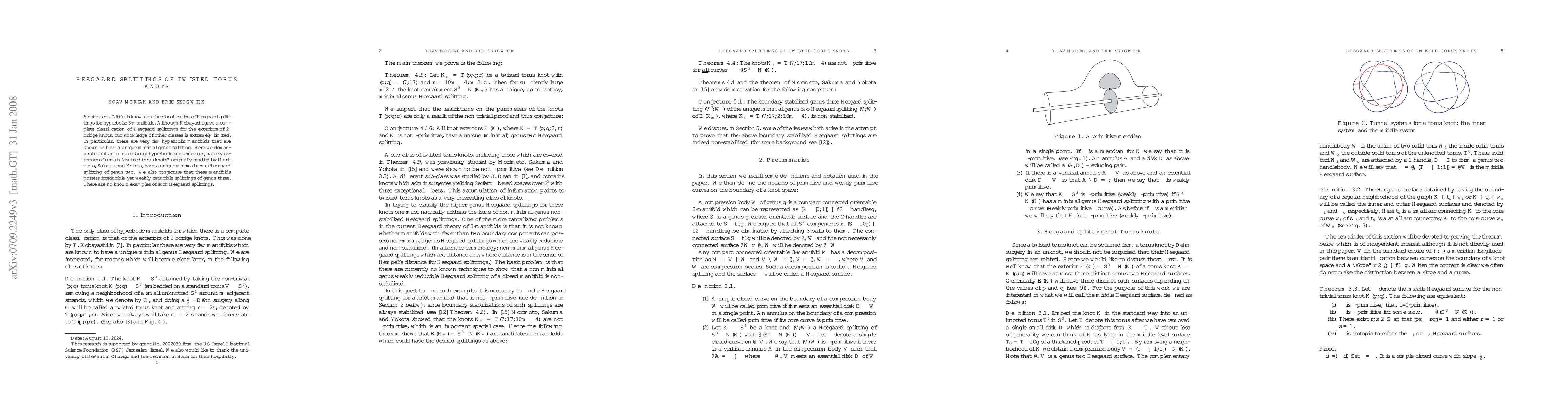 This paper investigates Heegaard splittings for the exteriors of twisted torus knots, revealing that these hyperbolic 3-manifolds possess a unique minimal genus Heegaard splitting of genus two. The authors also propose a conjecture regarding the existence of irreducible yet weakly reducible genus three splittings for these manifolds.