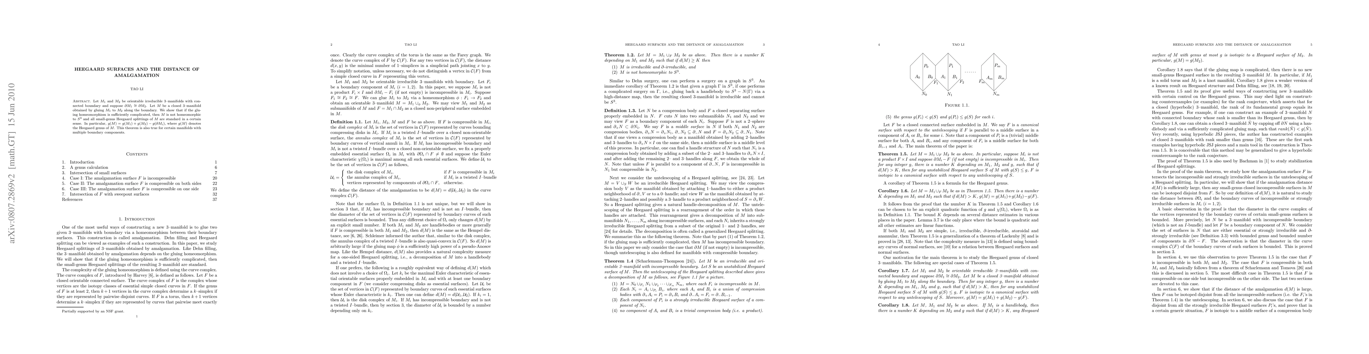 Let $M_1$ and $M_2$ be orientable irreducible 3--manifolds with connected boundary and suppose $\partial M_1\cong\partial M_2$. Let $M$ be a closed 3--manifold obtained by gluing $M_1$ to $M_2$ along the boundary. We show that if the gluing homeomorphism is sufficiently complicated, then $M$ is not homeomorphic to $S^3$ and all small-genus Heegaard splittings of $M$ are standard in a certain sense. In particular, $g(M)=g(M_1)+g(M_2)-g(\partial M_i)$, where $g(M)$ denotes the Heegaard genus of $M$. This theorem is also true for certain manifolds with multiple boundary components.