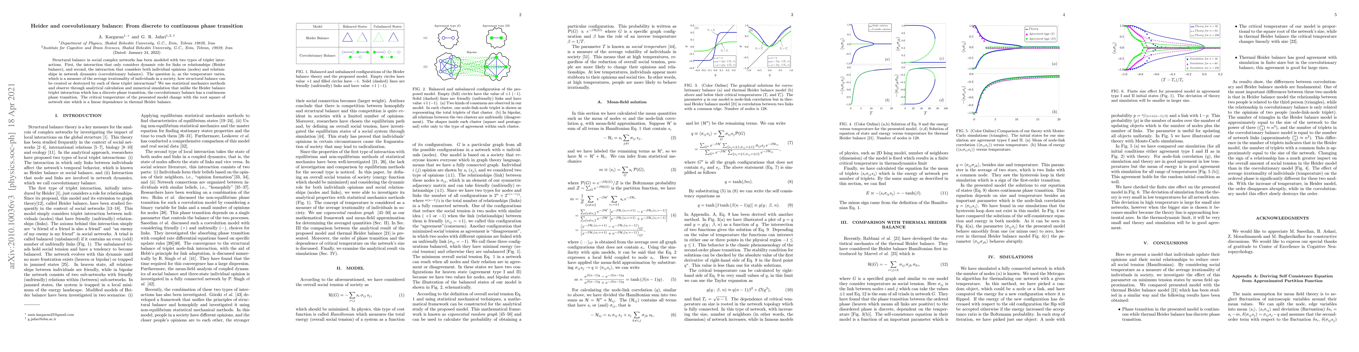 A study compares two types of structural balance in social complex networks: Heider balance and coevolutionary balance. It finds that while Heider balance has a discrete phase transition, coevolutionary balance has a continuous phase transition, with the critical temperature changing linearly with network size.