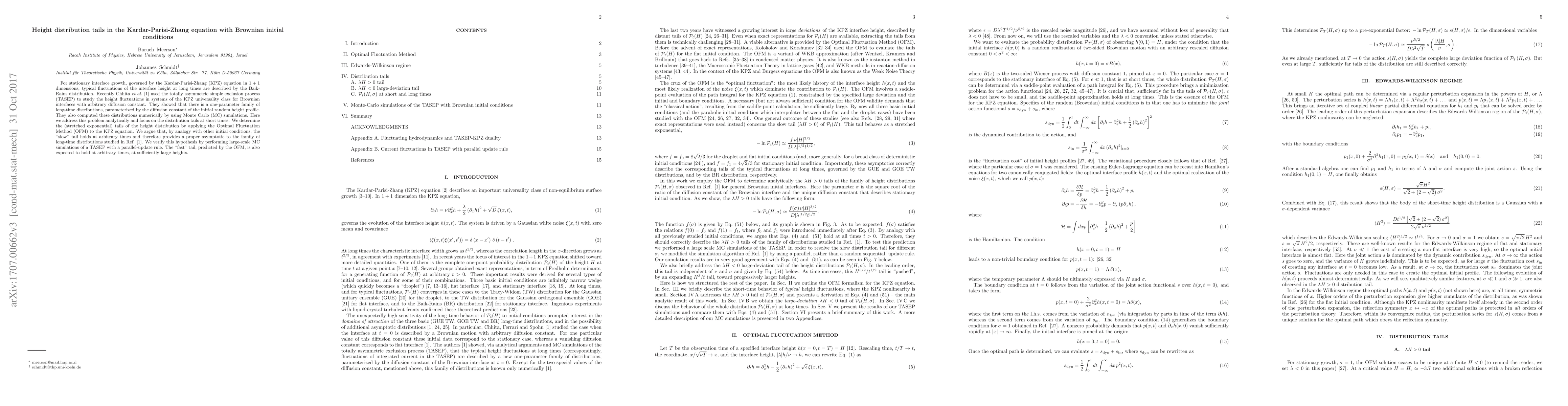 For stationary interface growth, governed by the Kardar-Parisi-Zhang (KPZ) equation in 1 + 1 dimensions, typical fluctuations of the interface height at long times are described by the Baik-Rains distribution. Recently Chhita et al. [1] used the totally asymmetric simple exclusion process (TASEP) to study the height fluctuations in systems of the KPZ universality class for Brownian interfaces with arbitrary diffusion constant. They showed that there is a one-parameter family of long-time distributions, parametrized by the diffusion constant of the initial random height profile. They also computed these distributions numerically by using Monte Carlo (MC) simulations. Here we address this problem analytically and focus on the distribution tails at short times. We determine the (stretched exponential) tails of the height distribution by applying the Optimal Fluctuation Method (OFM) to the KPZ equation. We argue that, by analogy with other initial conditions, the "slow" tail holds at arbitrary times and therefore provides a proper asymptotic to the family of long-time distributions studied in Ref. [1]. We verify this hypothesis by performing large-scale MC simulations of a TASEP with a parallel-update rule. The "fast" tail, predicted by the OFM, is also expected to hold at arbitrary times, at sufficiently large heights.