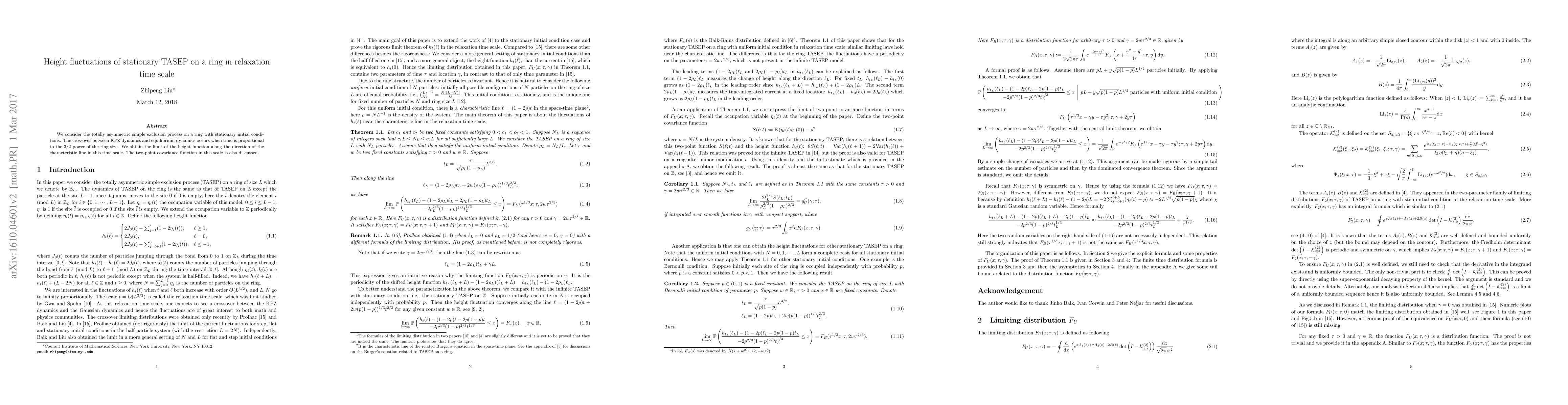Research on the totally asymmetric simple exclusion process (TASEP) on a ring shows that its dynamics transitions from KPZ-like to equilibrium behavior at a specific time scale proportional to the $3/2$ power of the ring size. The study provides insights into the height function and two-point covariance function in this time scale.