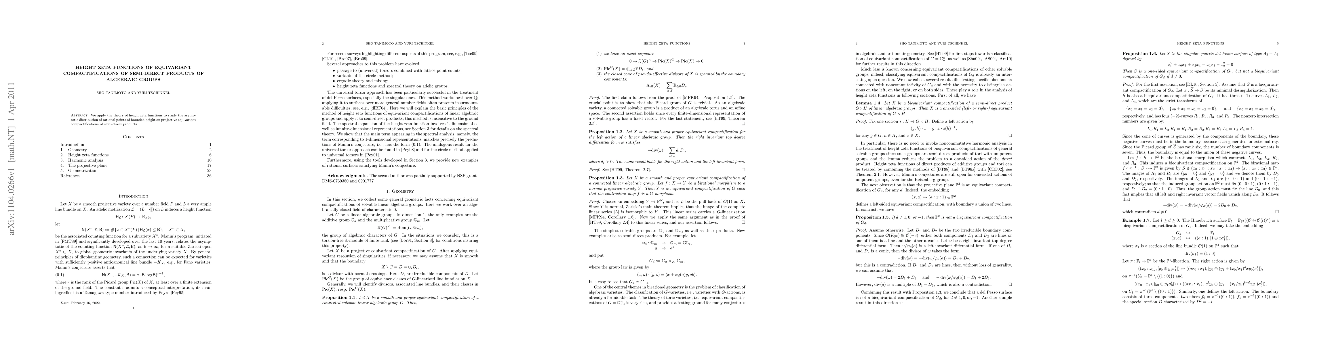 Summary: This paper investigates the asymptotic distribution of rational points of bounded height on equivariant compactifications of semi-direct products using height zeta functions, providing insights into their distribution properties.