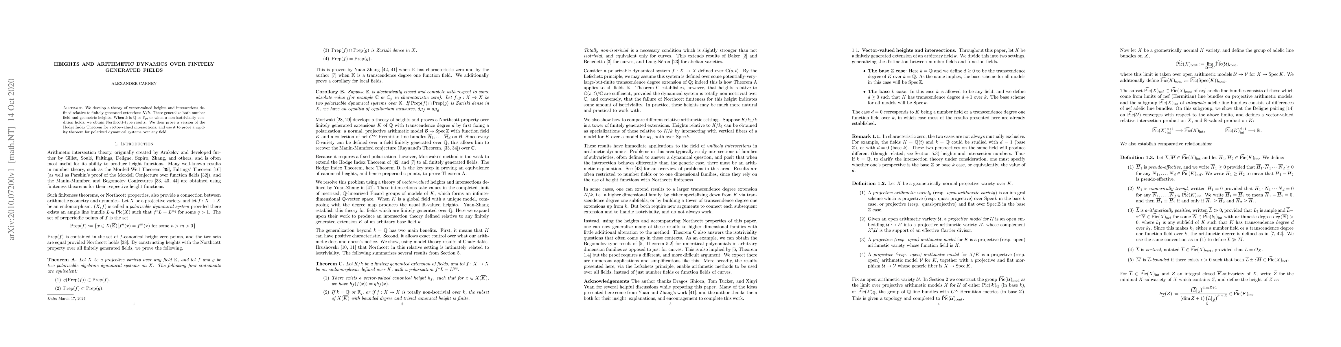 This paper develops a theory of vector-valued heights and intersections over finitely generated field extensions, generalizing both number field and geometric heights, and proves Northcott-type results under certain conditions. It also establishes a Hodge Index Theorem for vector-valued intersections and applies it to demonstrate rigidity in polarized dynamical systems.