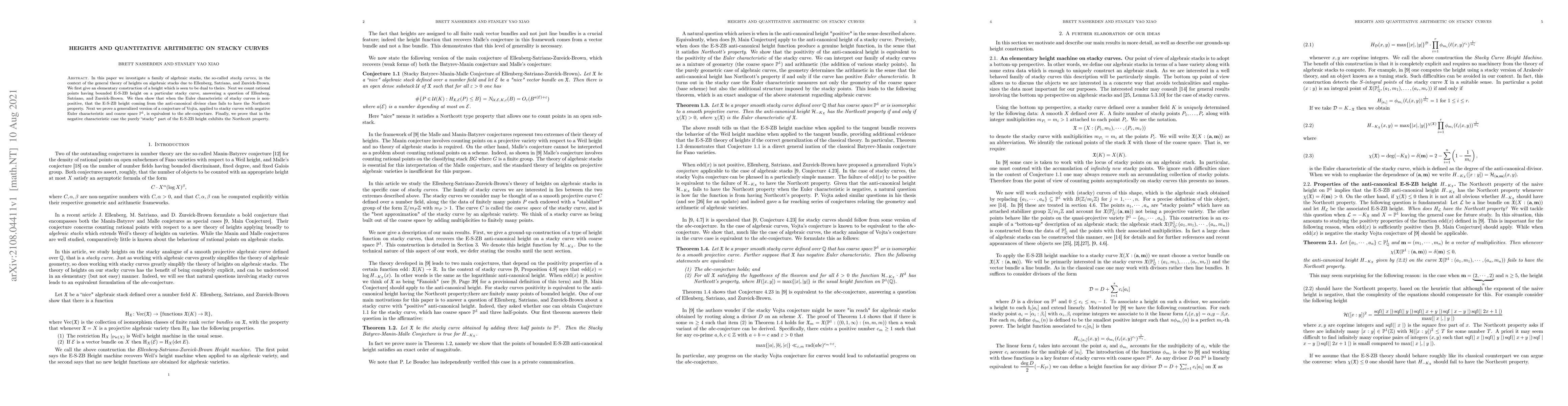 This paper explores heights on stacky curves within the framework of arithmetic on algebraic stacks, constructing an alternative height and counting points with bounded height. It also reveals that the original height fails the Northcott property for non-positive Euler characteristic curves and connects a Vojta conjecture to the abc-conjecture, while showing the Northcott property for the "stacky" part of the height in negative characteristic.
