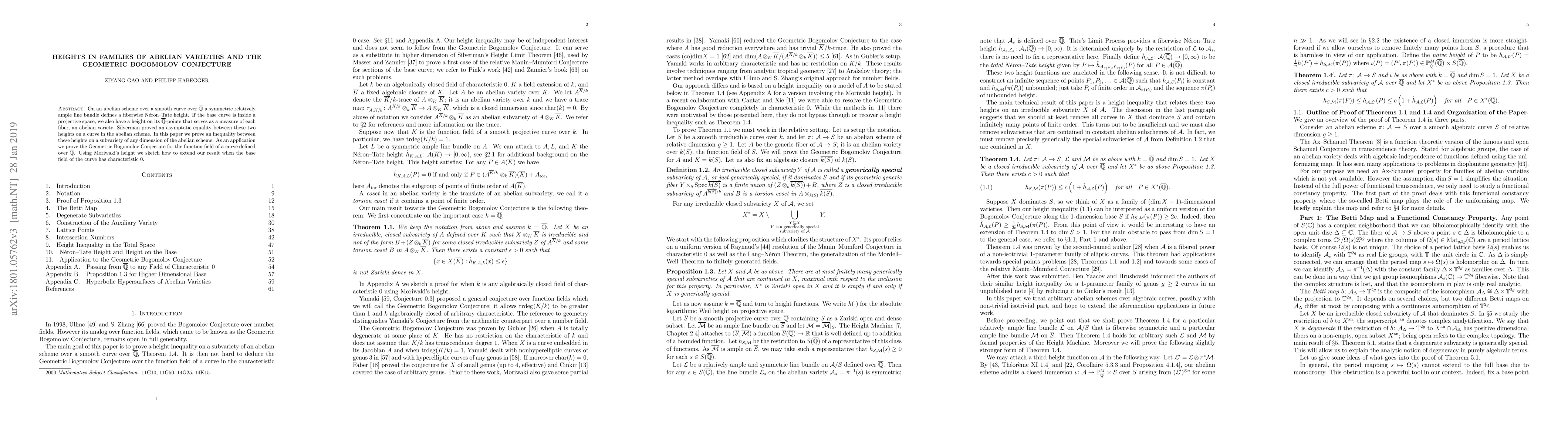 This paper establishes an inequality between heights on abelian varieties within an abelian scheme over a smooth curve, with implications for the Geometric Bogomolov Conjecture in function fields of curves defined over $ar{oldsymbol{Q}}$.