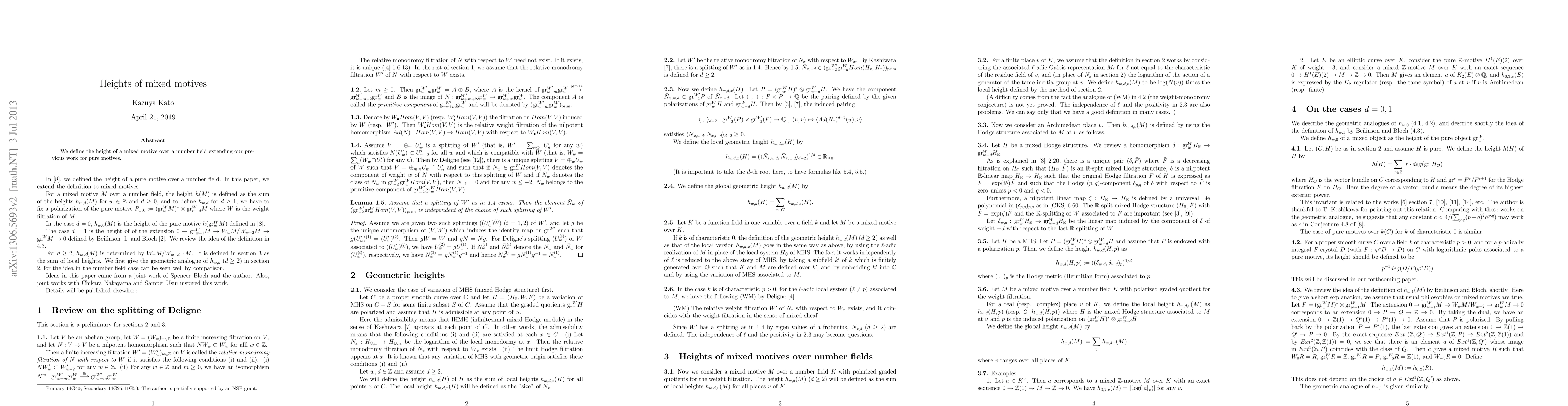 The paper defines a notion of height for mixed motives over number fields, extending the previously established framework for pure motives. This new definition aims to provide deeper insights into the structure and behavior of mixed motives.