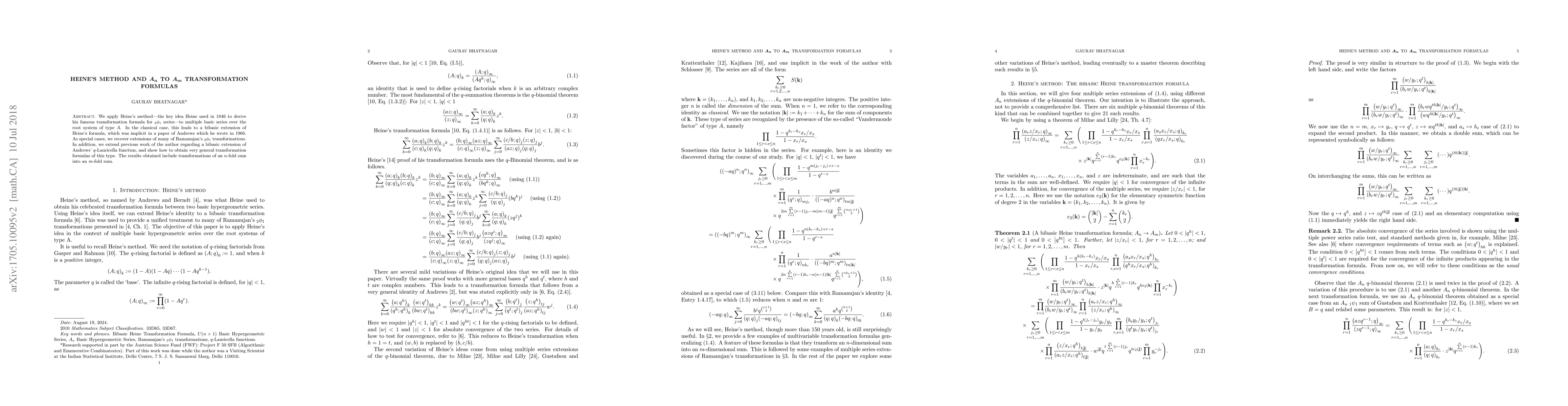 Researchers apply Heine's method to transform multiple basic series over the root system of type A into new formulas, recovering Ramanujan's transformations and extending previous work on a bibasic extension.