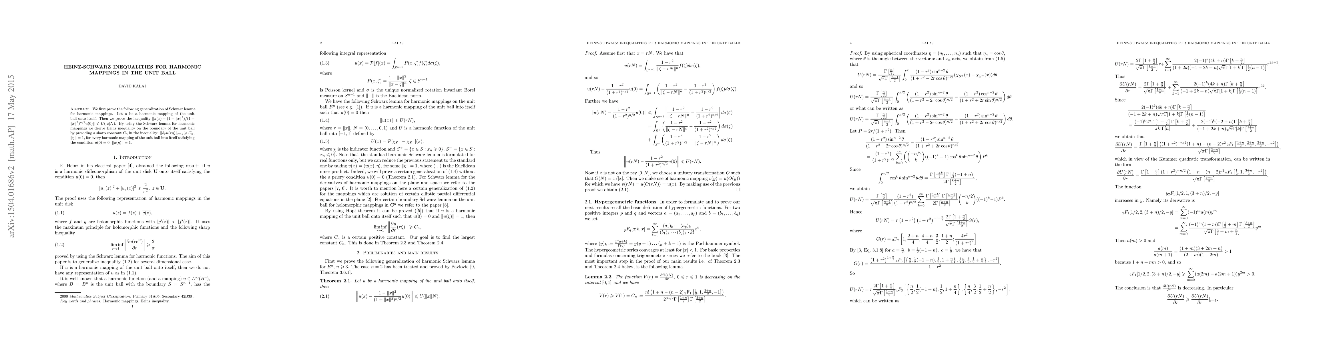 This paper generalizes the Schwarz lemma for harmonic mappings and proves the Heinz inequality for the unit ball, establishing a sharp constant $C_n$ for harmonic mappings from the unit ball to itself under the conditions $u(0)=0$ and $\|u(\eta)\|=1$. The derived inequality provides a boundary condition for such mappings.