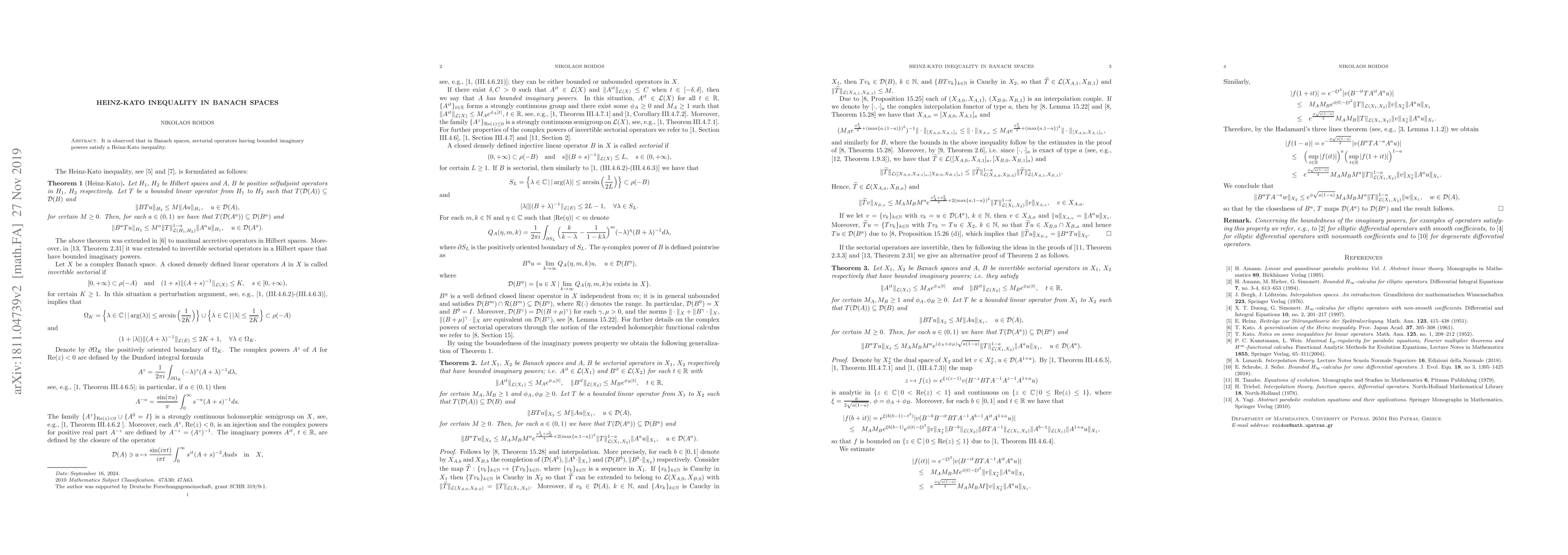Summary: The paper establishes that sectorial operators in Banach spaces with bounded imaginary powers adhere to the Heinz-Kato inequality, providing a new insight into operator theory within functional analysis.