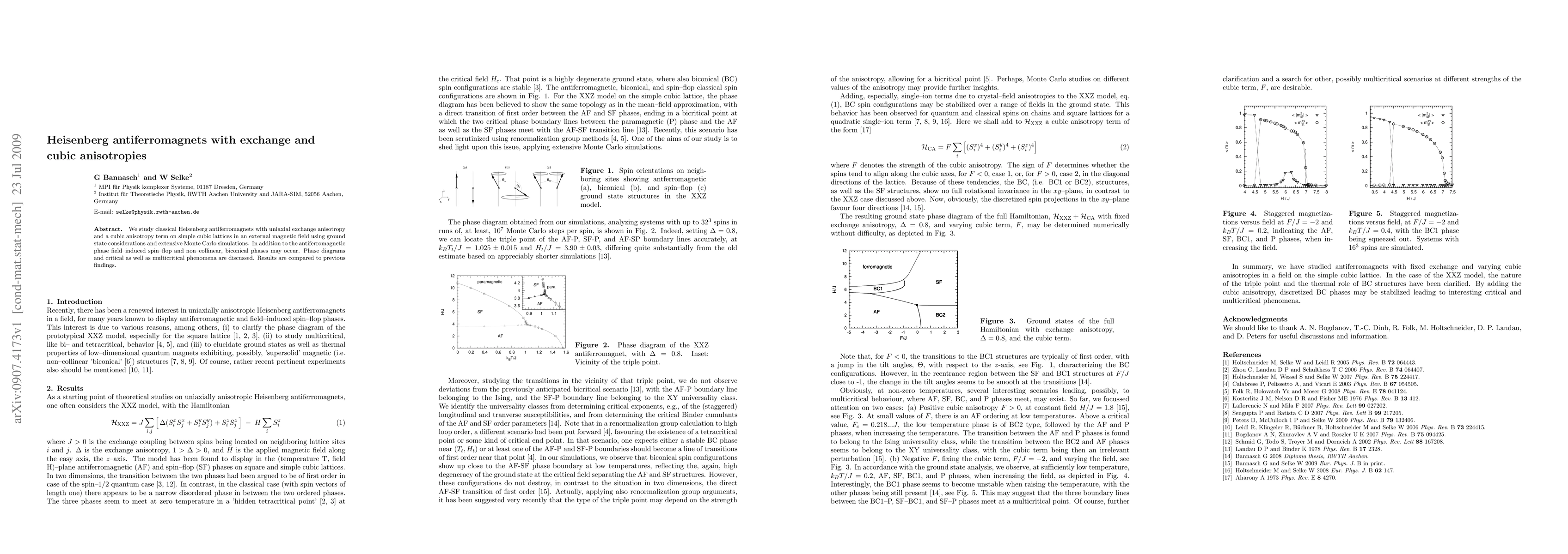 Researchers studied Heisenberg antiferromagnets with specific anisotropies in a magnetic field, finding new phase transitions and behaviors beyond previous findings. Their simulations revealed complex phase diagrams and critical phenomena.