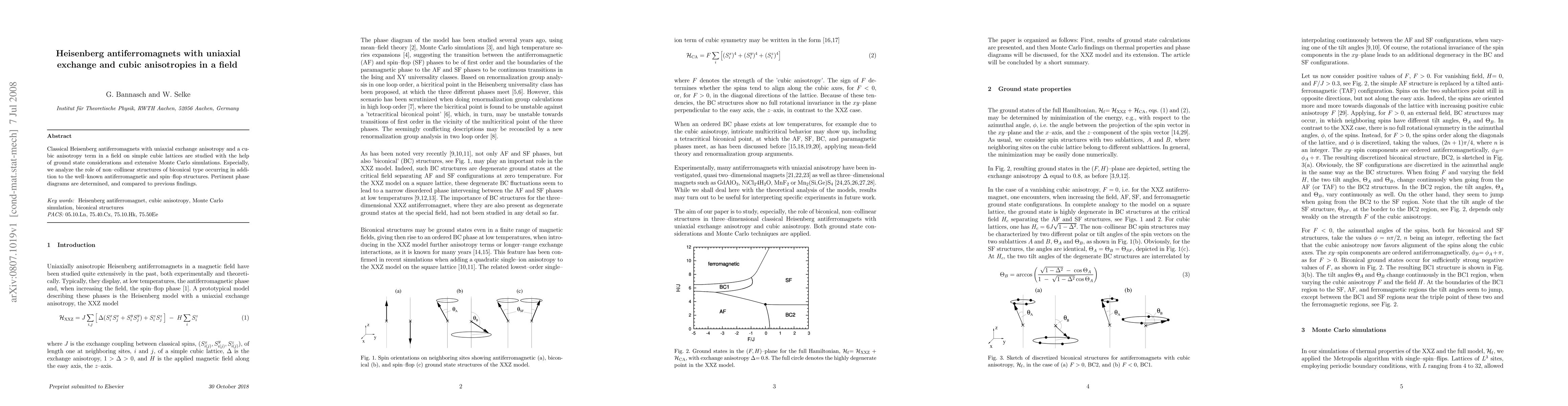 This paper investigates classical Heisenberg antiferromagnets on simple cubic lattices with uniaxial and cubic anisotropies under an applied field, focusing on non-collinear biconical structures. It uses ground state analysis and Monte Carlo simulations to determine and compare phase diagrams with previous findings.