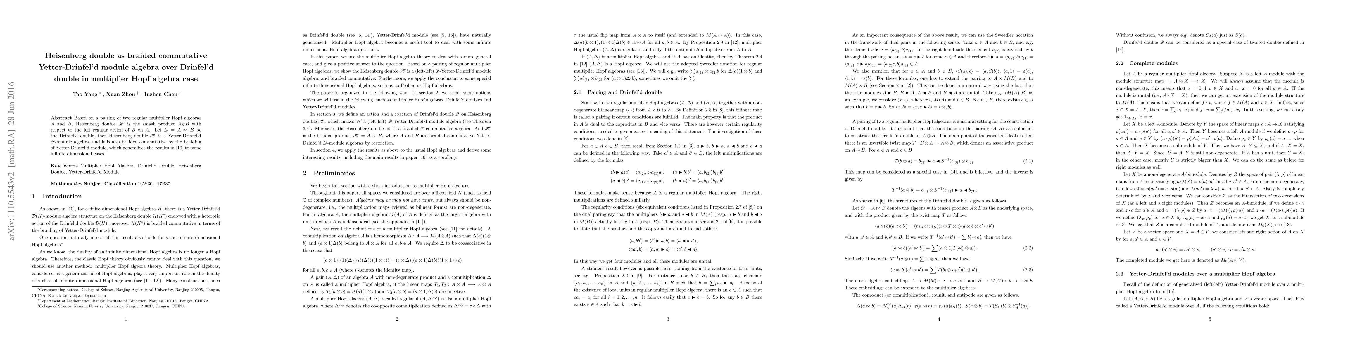 Based on a pairing of two regular multiplier Hopf algebras $A$ and $B$, Heisenberg double $\mathscr{H}$ is the smash product $A \# B$ with respect to the left regular action of $B$ on $A$. Let $\mathscr{D}=A\bowtie B$ be the Drinfel'd double, then Heisenberg double $\mathscr{H}$ is a Yetter-Drinfel'd $\mathscr{D}$-module algebra, and it is also braided commutative by the braiding of Yetter-Drinfel'd module, which generalizes the results in [10] to some infinite dimensional cases.