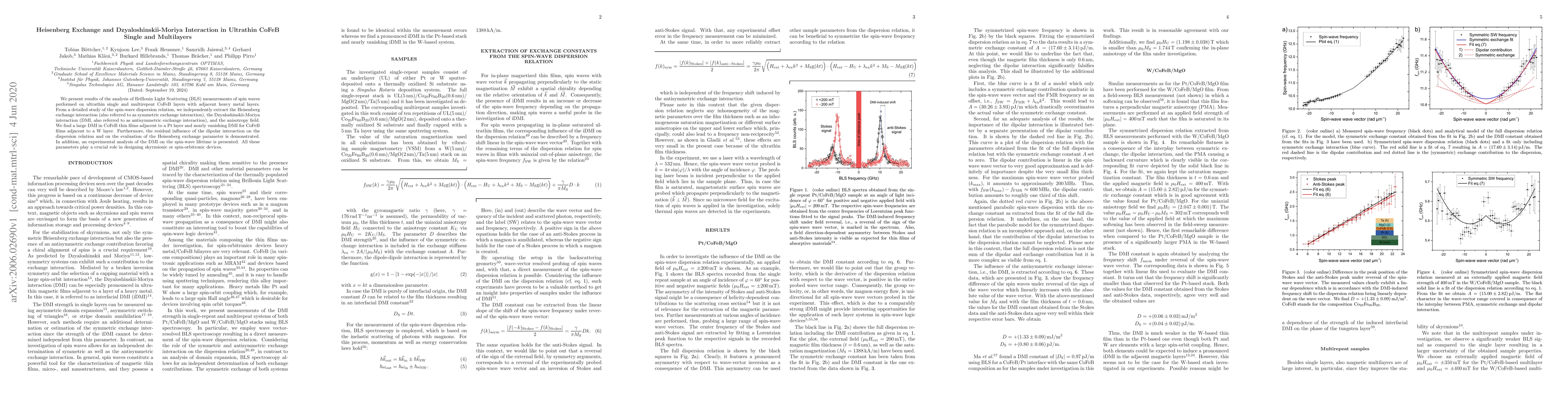 This paper analyzes spin waves in ultrathin CoFeB layers via Brillouin Light Scattering to extract Heisenberg exchange interaction, Dzyaloshinskii-Moriya interaction, and anisotropy field, revealing significant differences in Dzyaloshinskii-Moriya interaction dependent on adjacent heavy metal layers. These findings are essential for developing skyrmionic and spin-orbitronic devices.