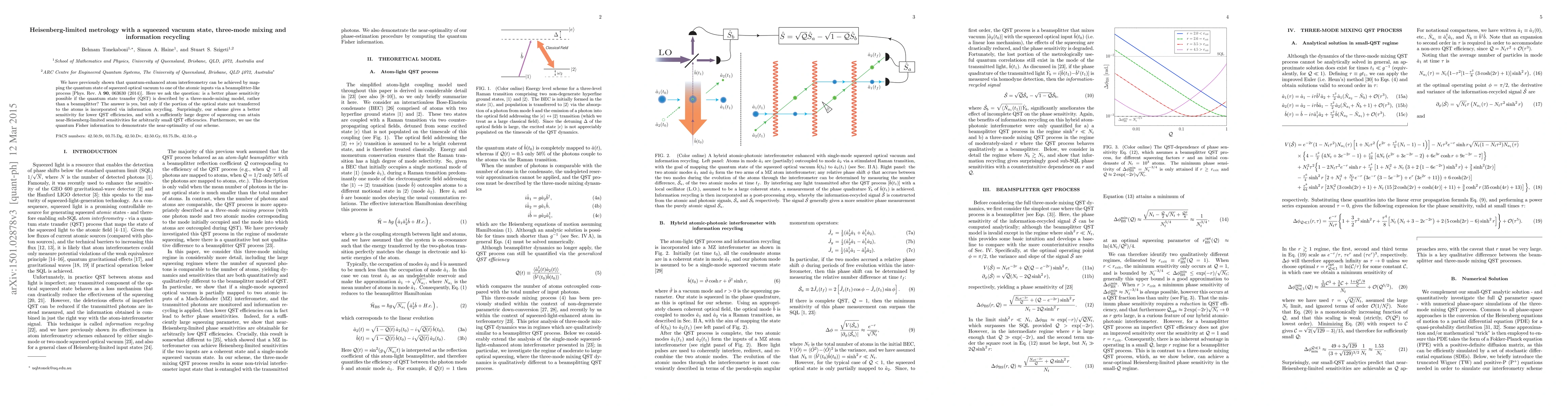 The paper presents an advanced quantum metrology scheme using a hybrid atomic-photonic interferometer, demonstrating that information recycling can enhance phase sensitivity even with imperfect quantum state transfer.