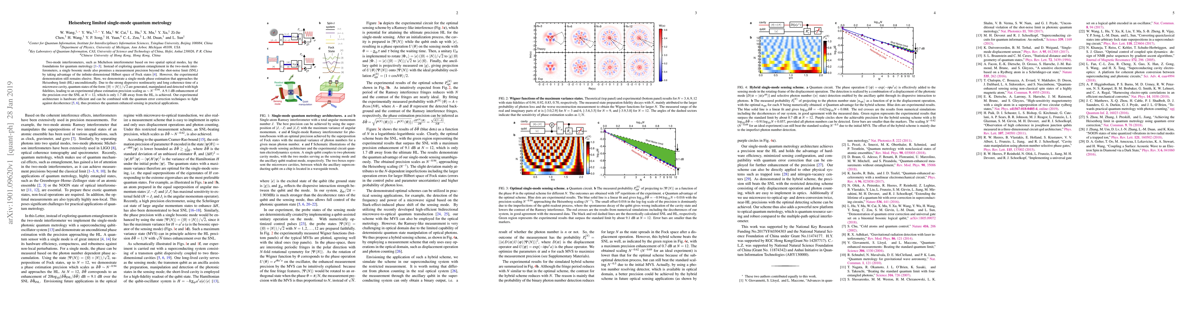 The paper presents a single-mode quantum metrology architecture that achieves precision near the Heisenberg limit, maintaining hardware efficiency, minimized sensing configuration, and compatibility with quantum error correction for further precision enhancement.