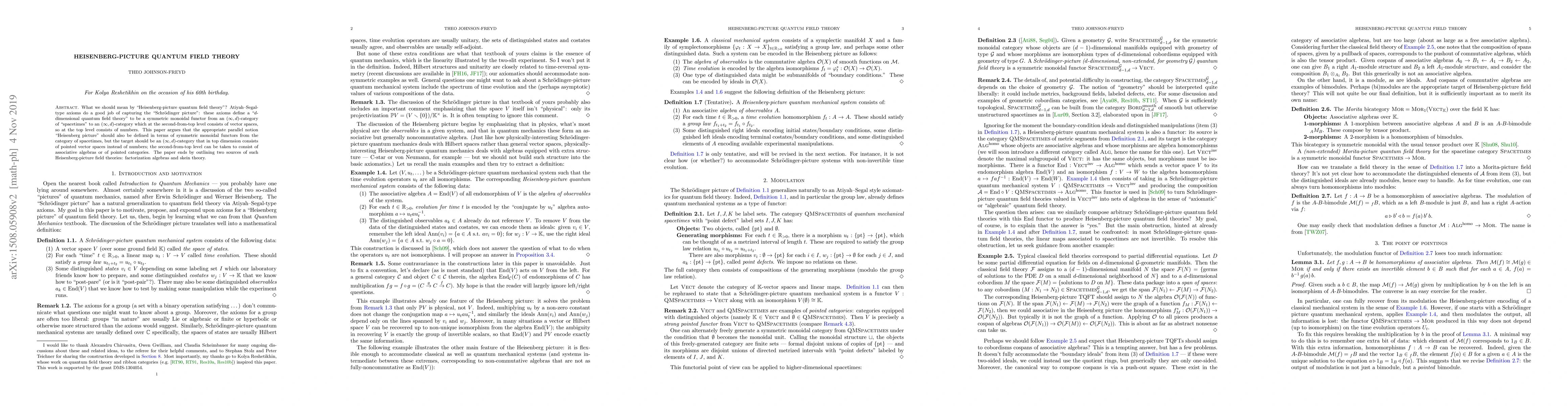 This paper proposes a definition for "Heisenberg-picture quantum field theory" using symmetric monoidal functors, targeting an $(\infty,d)$-category with pointed vector spaces at the top level. It outlines factorization algebras and skein theory as potential sources of such theories.