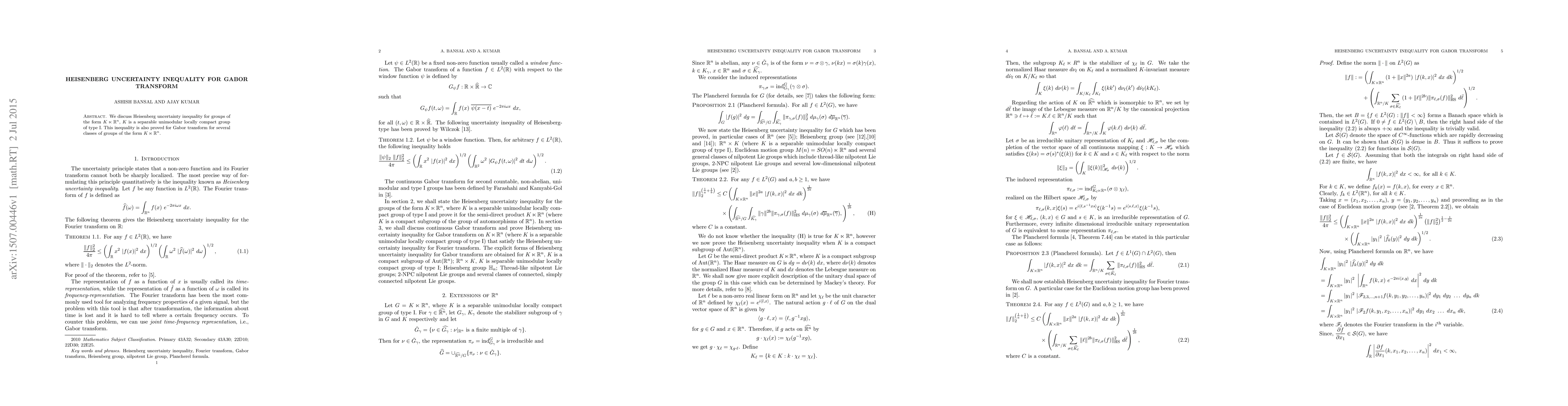 This paper explores the Heisenberg uncertainty inequality for groups of the form $K \ltimes \mathbb{R}^n$, proving it for the Gabor transform in several classes of such groups, where $K$ is a separable unimodular locally compact group of type I.