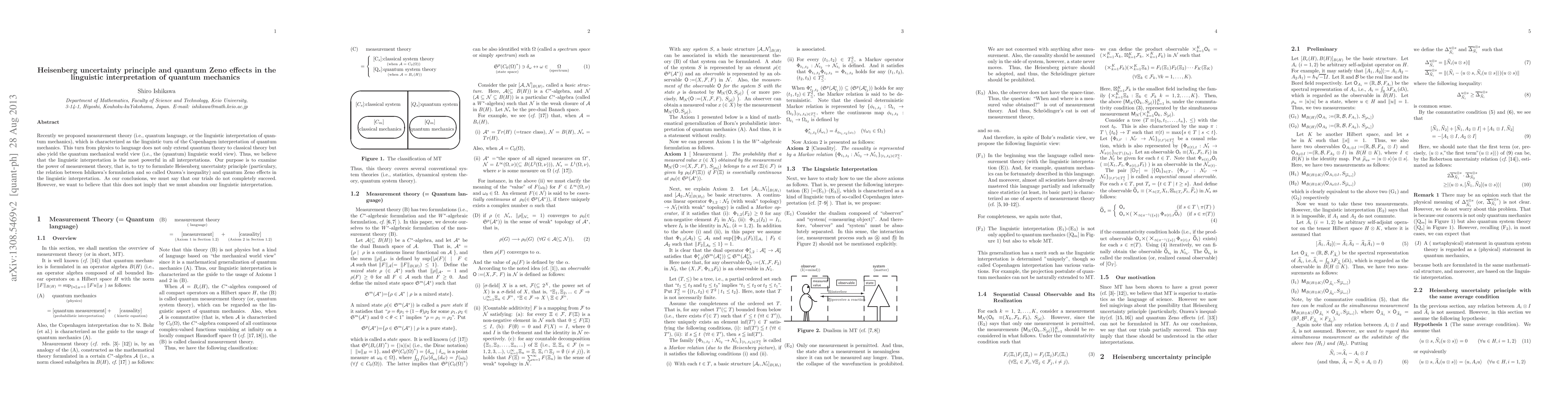 Recently we proposed measurement theory (i.e., quantum language, or the linguistic interpretation of quantum mechanics), which is characterized as the linguistic turn of the Copenhagen interpretation of quantum mechanics. This turn from physics to language does not only extend quantum theory to classical theory but also yield the quantum mechanical world view (i.e., the (quantum) linguistic world view). Thus, we believe that the linguistic interpretation is the most powerful in all interpretations. Our purpose is to examine the power of measurement theory, that is, to try to formulate Heisenberg uncertainty principle (particulary, the relation between Ishikawa's formulation and so called Ozawa's inequality) and quantum Zeno effects in the linguistic interpretation. As our conclusions, we must say that our trials do not completely succeed. However, we want to believe that this does not imply that we must abandon our linguistic interpretation.