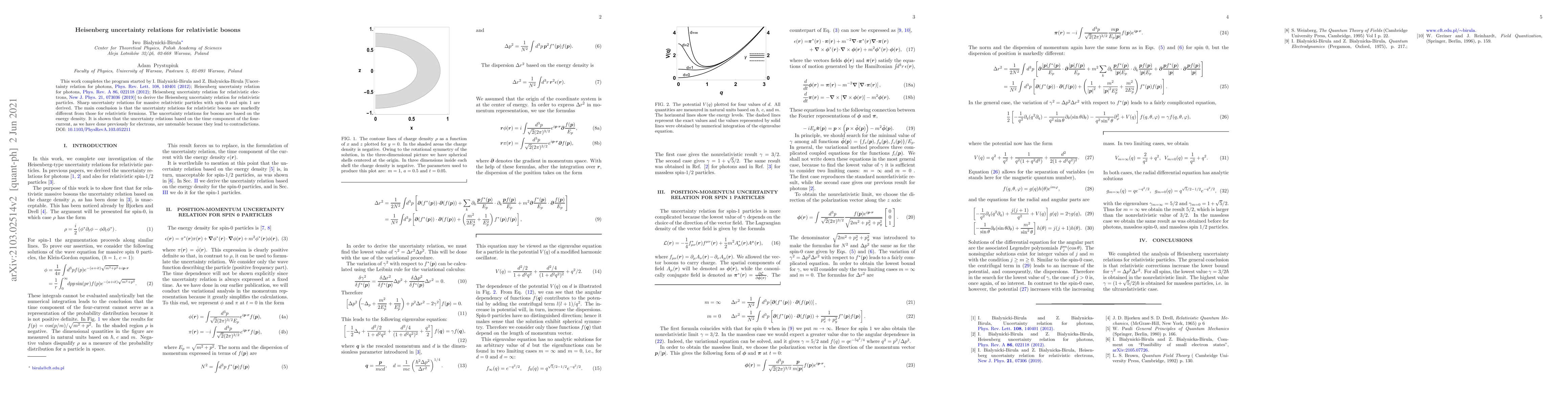The paper presents a novel derivation of uncertainty relations for relativistic bosons using energy density, distinguishing them from fermions and resolving issues with previous approaches based on the time-component of the four-current.