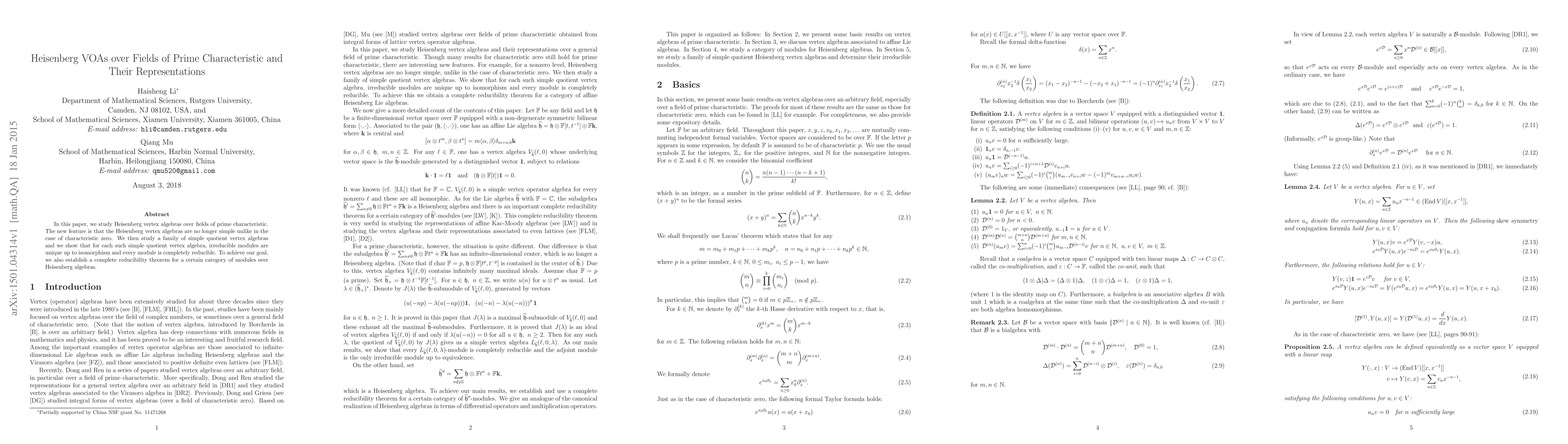 In this paper, we study Heisenberg vertex algebras over fields of prime characteristic. The new feature is that the Heisenberg vertex algebras are no longer simple unlike in the case of characteristic zero. We then study a family of simple quotient vertex algebras and we show that for each such simple quotient vertex algebra, irreducible modules are unique up to isomorphism and every module is completely reducible. To achieve our goal, we also establish a complete reducibility theorem for a certain category of modules over Heisenberg algebras.