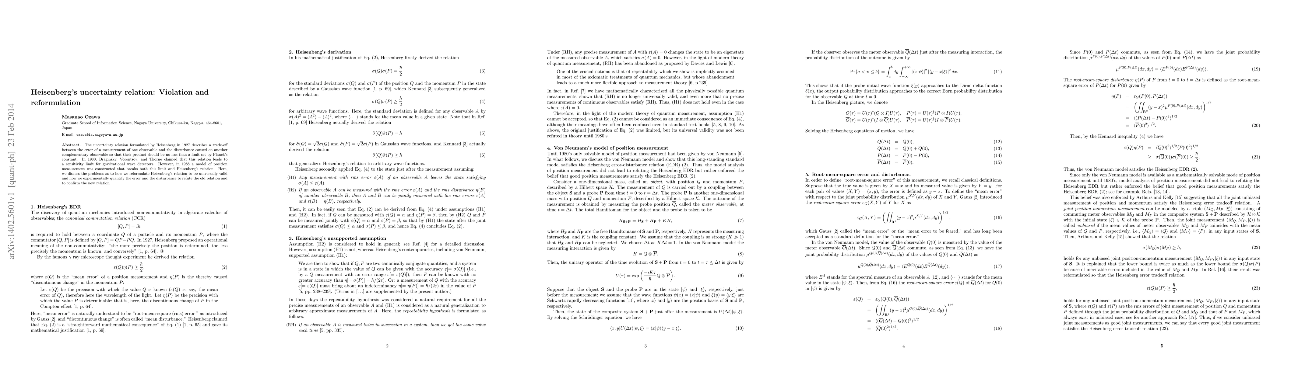 The uncertainty relation formulated by Heisenberg in 1927 describes a trade-off between the error of a measurement of one observable and the disturbance caused on another complementary observable so that their product should be no less than a limit set by Planck's constant. In 1980, Braginsky, Vorontsov, and Thorne claimed that this relation leads to a sensitivity limit for gravitational wave detectors. However, in 1988 a model of position measurement was constructed that breaks both this limit and Heisenberg's relation. Here, we discuss the problems as to how we reformulate Heisenberg's relation to be universally valid and how we experimentally quantify the error and the disturbance to refute the old relation and to confirm the new relation.