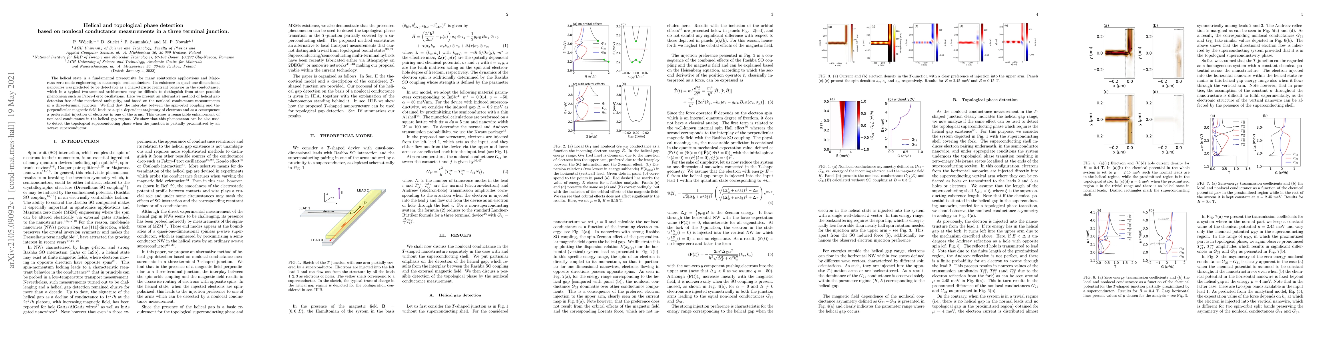 The helical state is a fundamental prerequisite for many spintronics applications and Majorana zero mode engineering in nanoscopic semiconductors. Its existence in quasi-one-dimensional nanowires was predicted to be detectable as a characteristic reentrant behavior in the conductance, which in a typical two-terminal architecture may be difficult to distinguish from other possible phenomena such as Fabry-Perot oscillations. Here we present an alternative method of helical gap detection free of the mentioned ambiguity, and based on the nonlocal conductance measurements in a three-terminal junction. We find that the interplay between the spin-orbit coupling and the perpendicular magnetic field leads to a spin-dependent trajectory of electrons and as a consequence a preferential injection of electrons in one of the arms. This causes a remarkable enhancement of nonlocal conductance in the helical gap regime. We show that this phenomenon can be also used to detect the topological superconducting phase when the junction is partially proximitized by an s-wave superconductor.