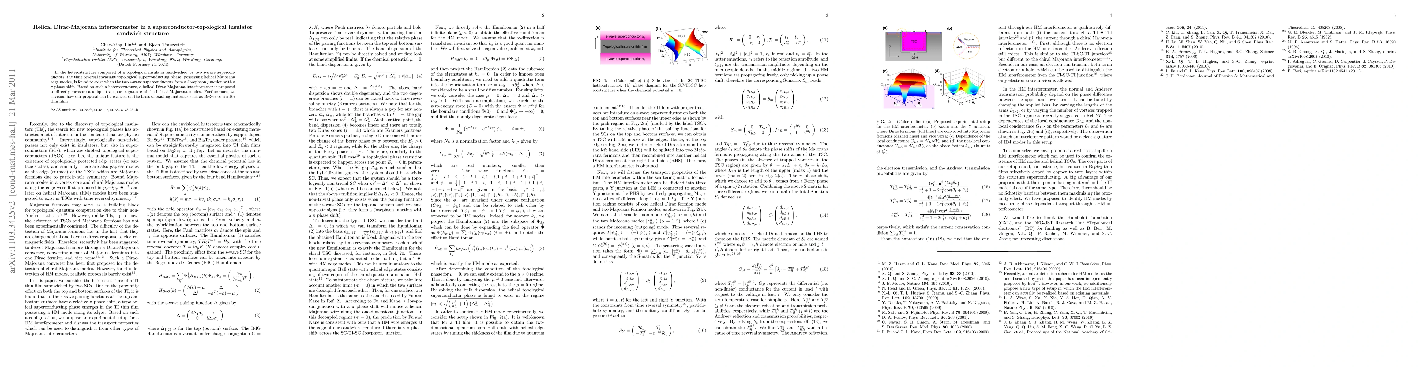 This research proposes a helical Dirac-Majorana interferometer in a superconducting-topological insulator sandwich structure to measure Majorana modes, which exhibit unique transport signatures in the topological superconducting phase with a pi-phase Josephson junction. The feasibility of this setup is demonstrated using existing materials like Bi2Se3 or Bi2Te3 thin films.